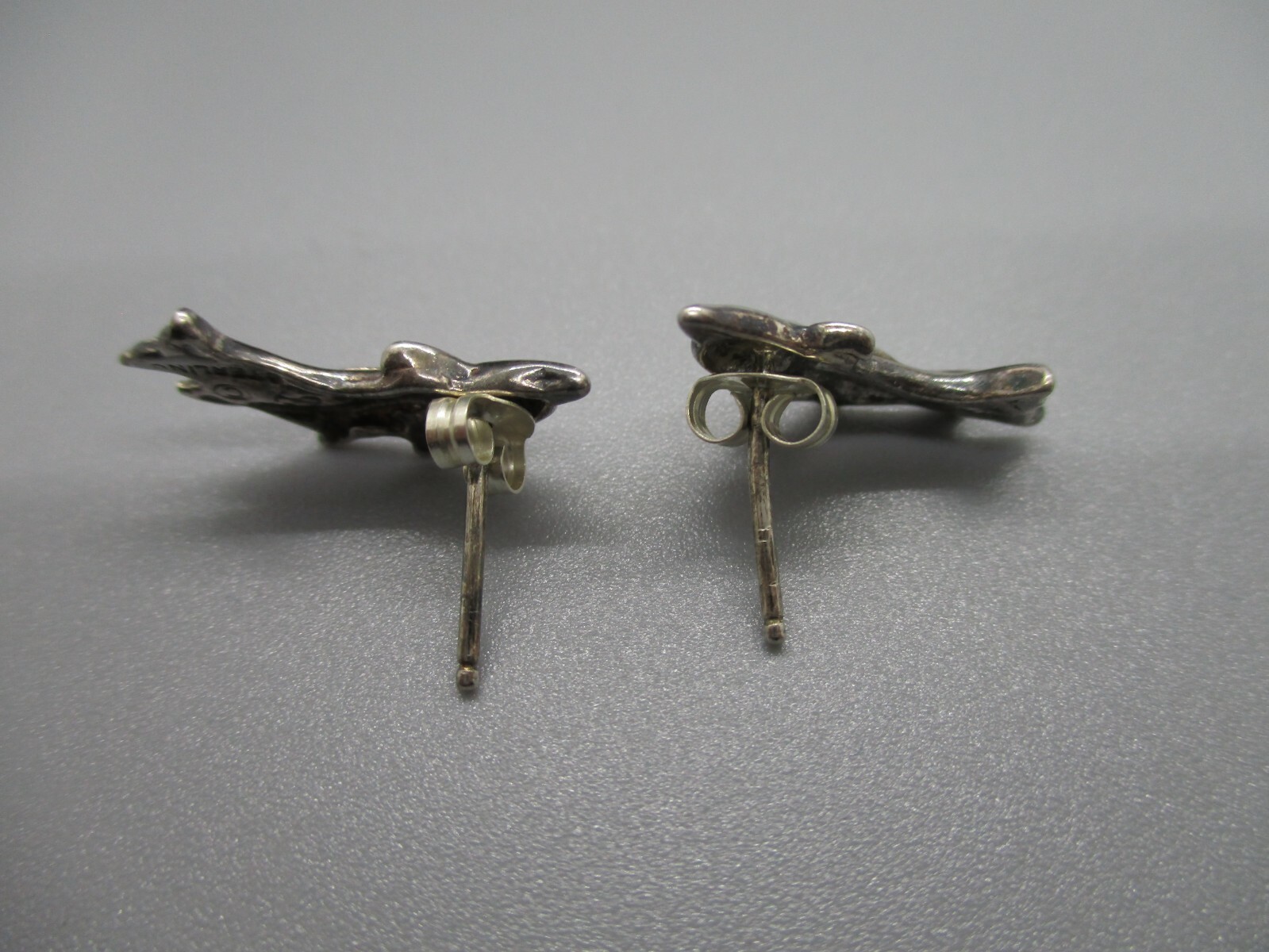 как выглядит 925 Sterling Silver dolphin with baby Pierced stud earrings hallmarked фото