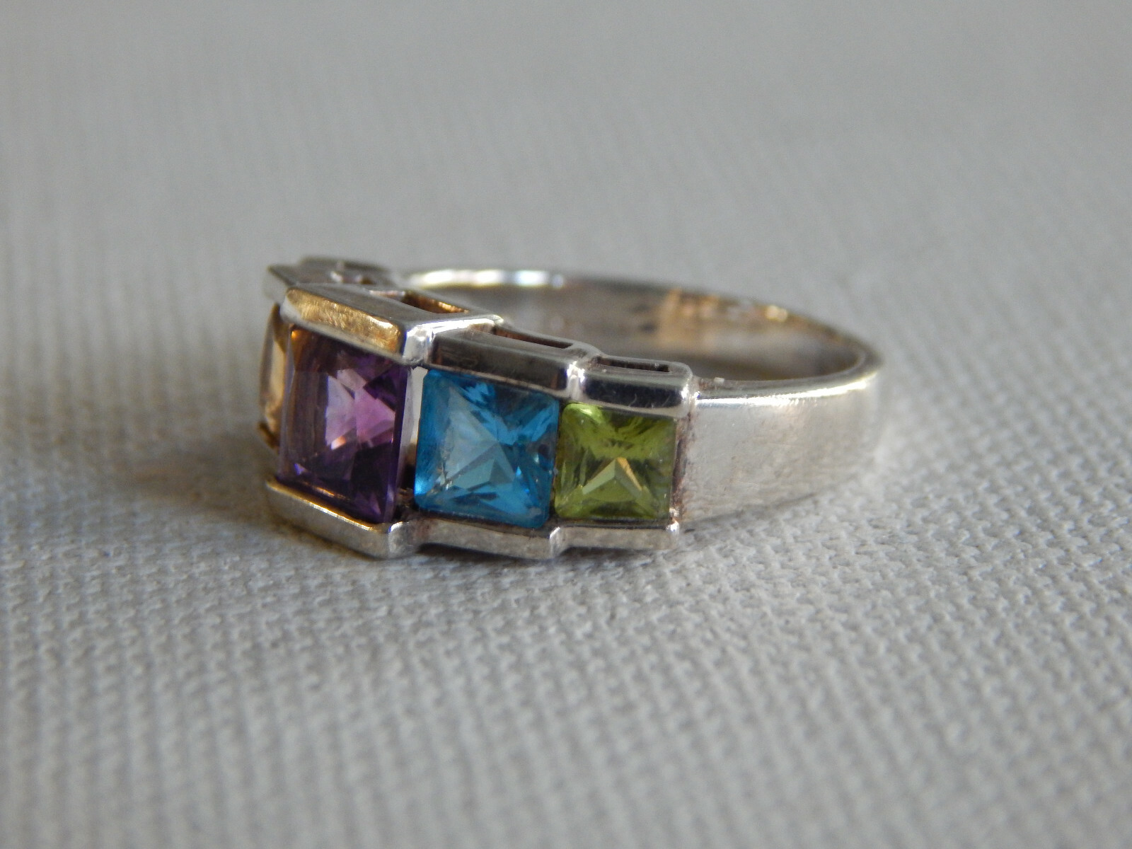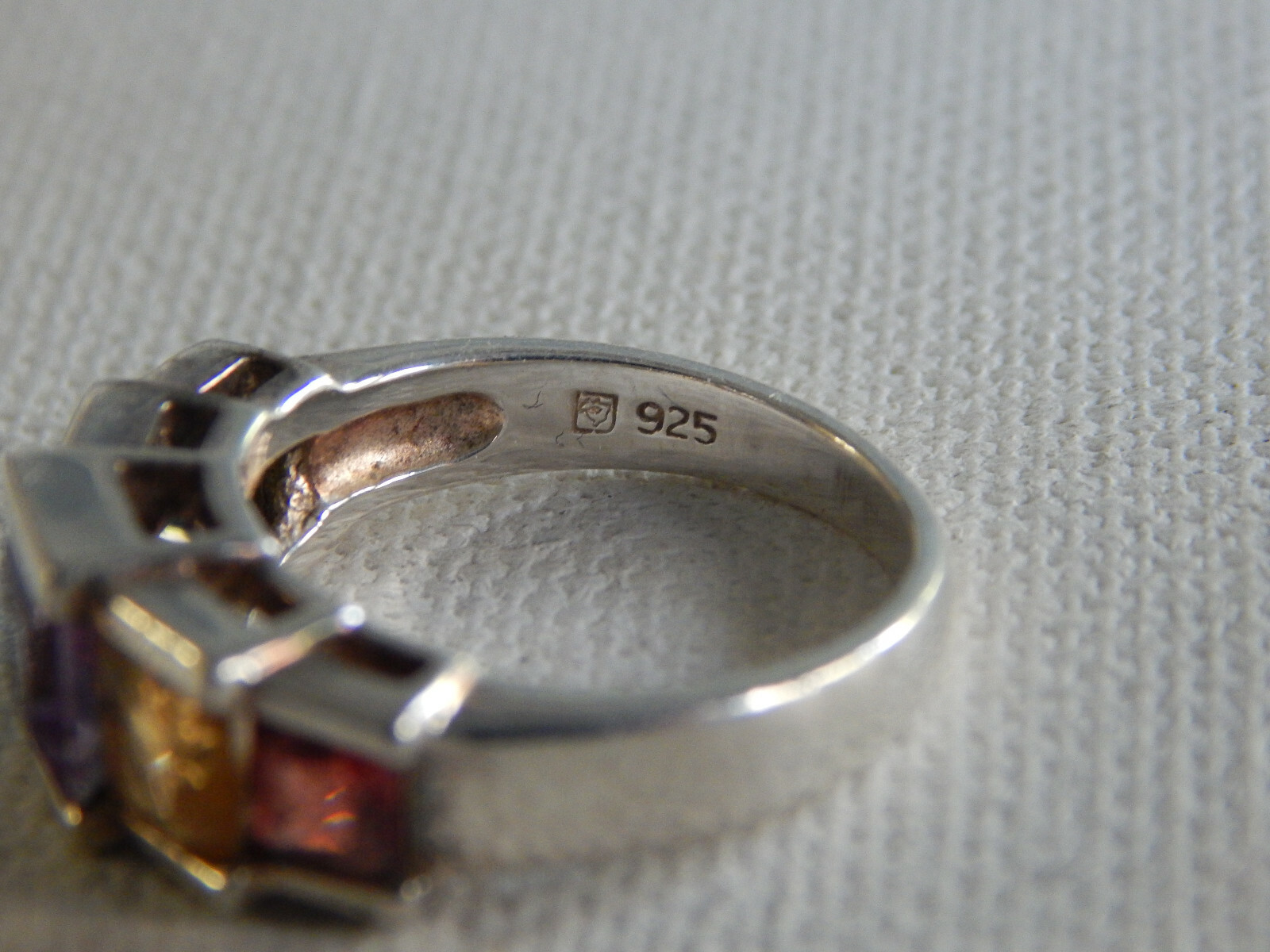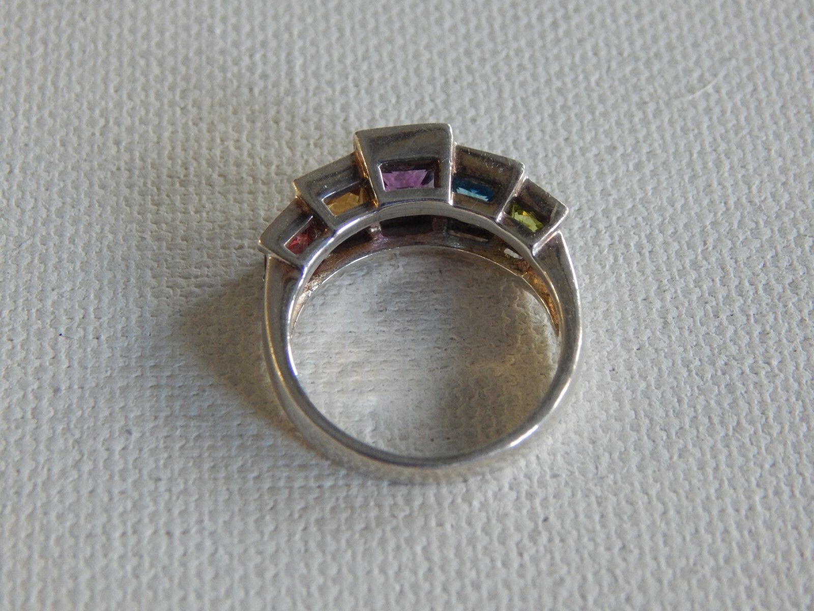 как выглядит Sterling Silver Rainbow Mulitcolor Statement Ring Sz 7 фото