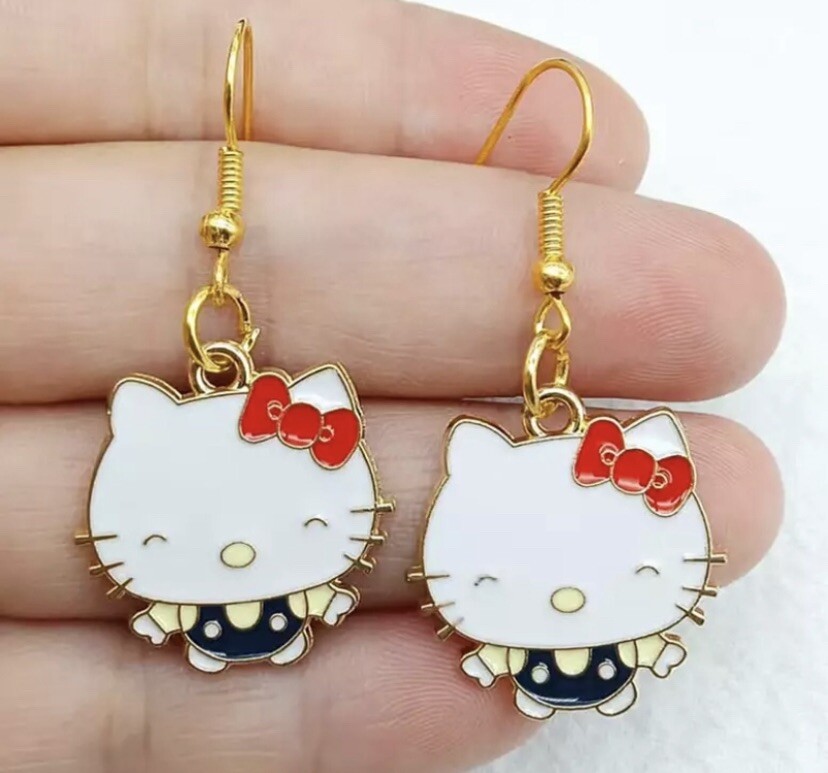Gold Hello Kitty Drop Dangle Earrings
