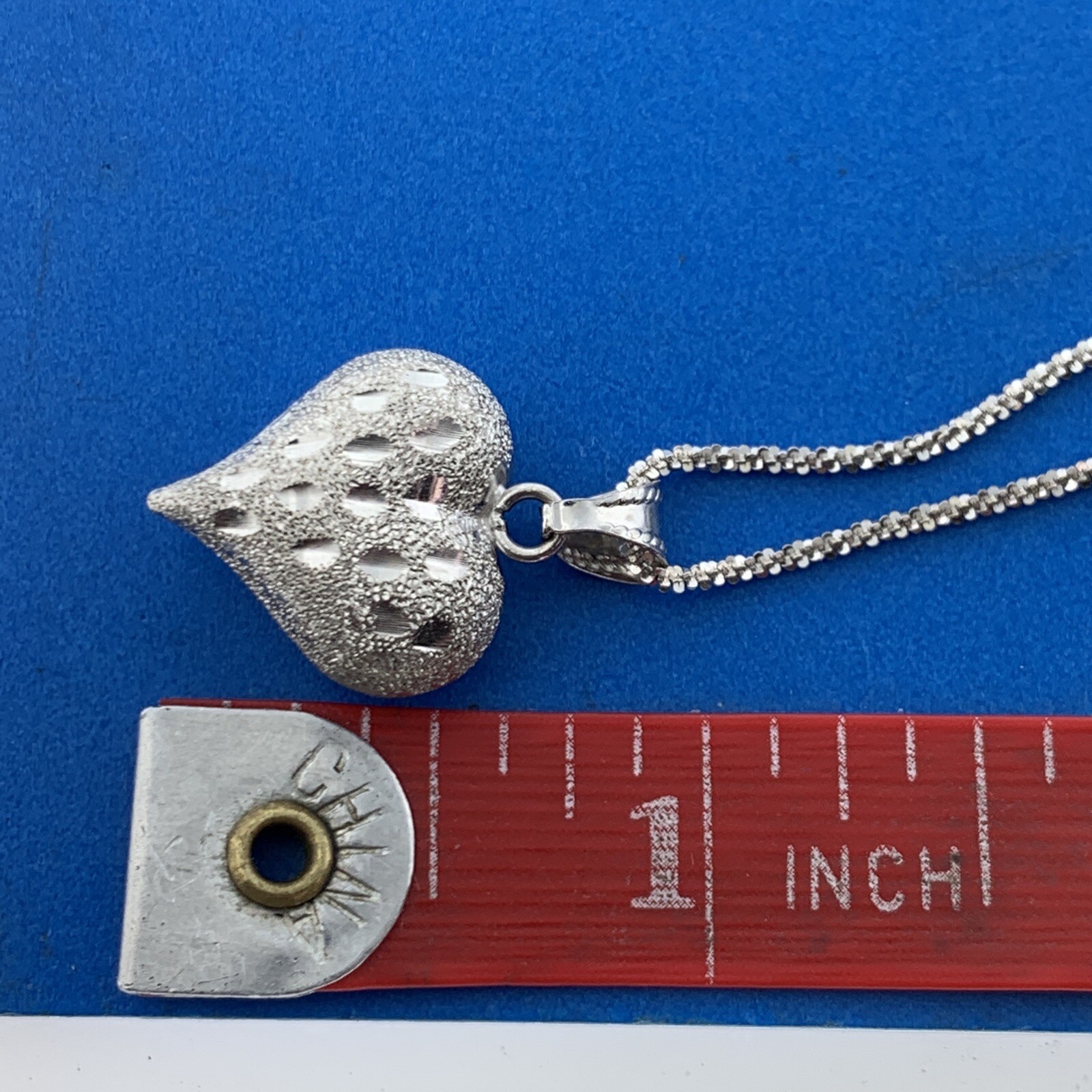 Designer Italy 10K White Gold Polished Diamond Cut Puffy Heart Pendant Necklace