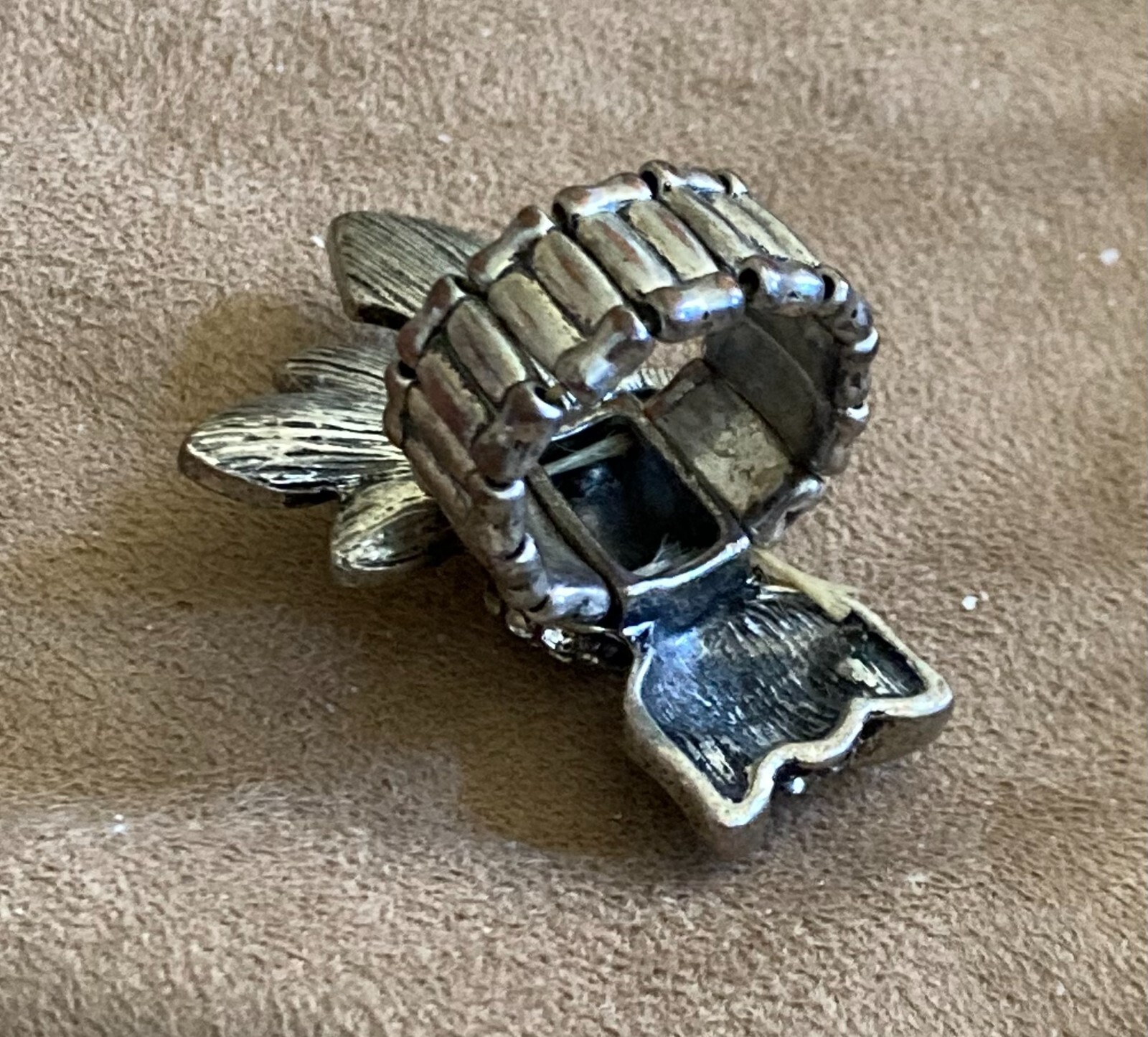 как выглядит Owl Cocktail Ring Silver Tone Clear Gold Rhinestone Studded Black Eyes C125A26 фото