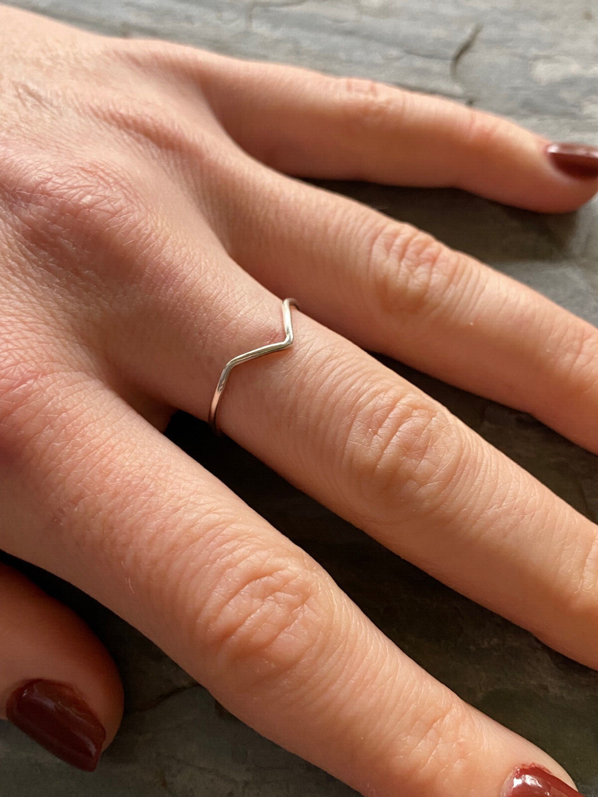 как выглядит 925 Sterling Silver Thin Stackable Wave Ring Size 7 Minimalist Simple Boho фото