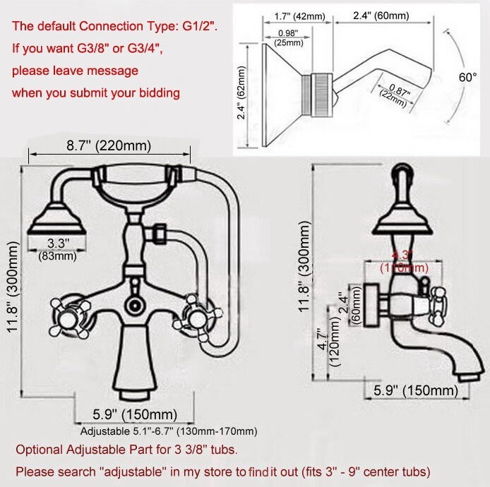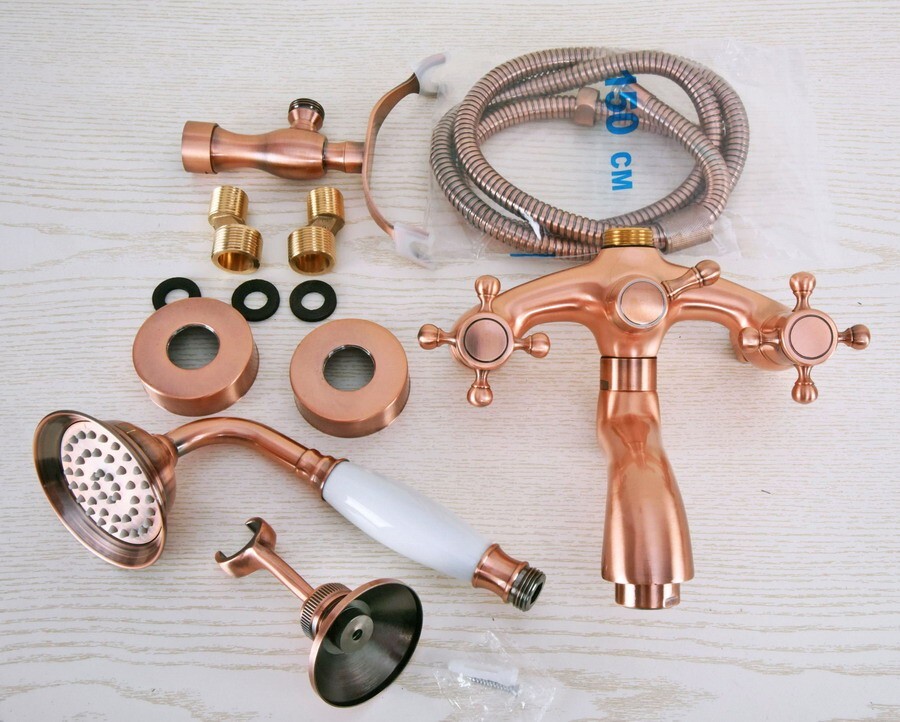 Antique Red Copper Clawfoot Bath Tub Faucet with Handshower - Wall Mount fna371