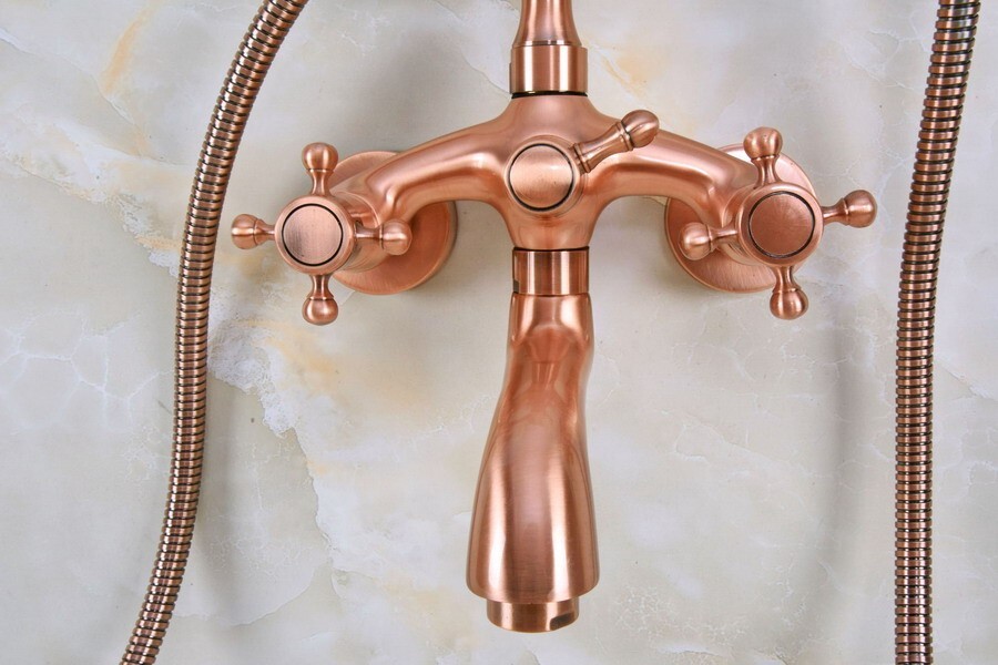 как выглядит Antique Red Copper Clawfoot Bath Tub Faucet with Handshower - Wall Mount fna371 фото