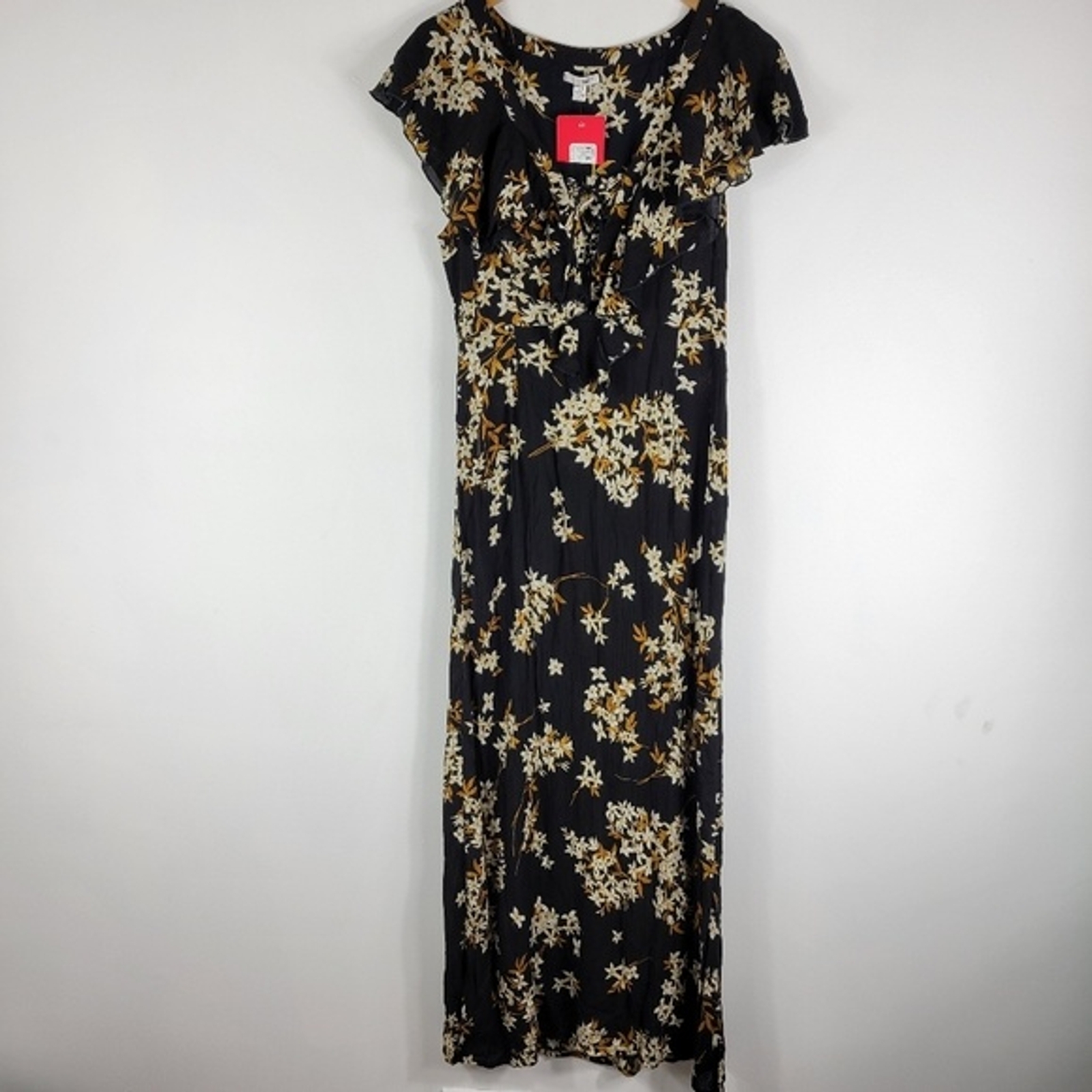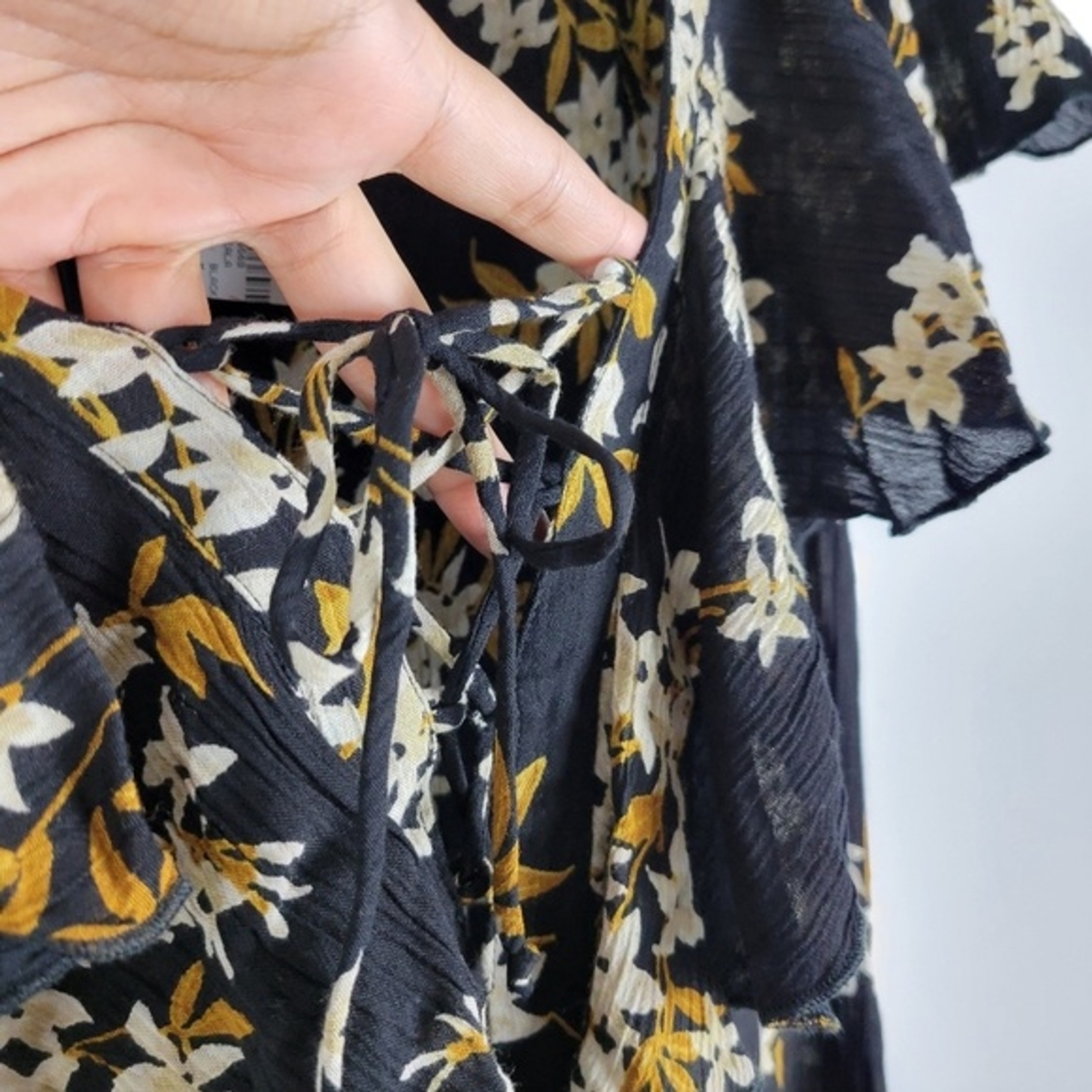 New Amuse Society Alana Floral Flutter Sleeve Lace Up Maxi Dress Medium