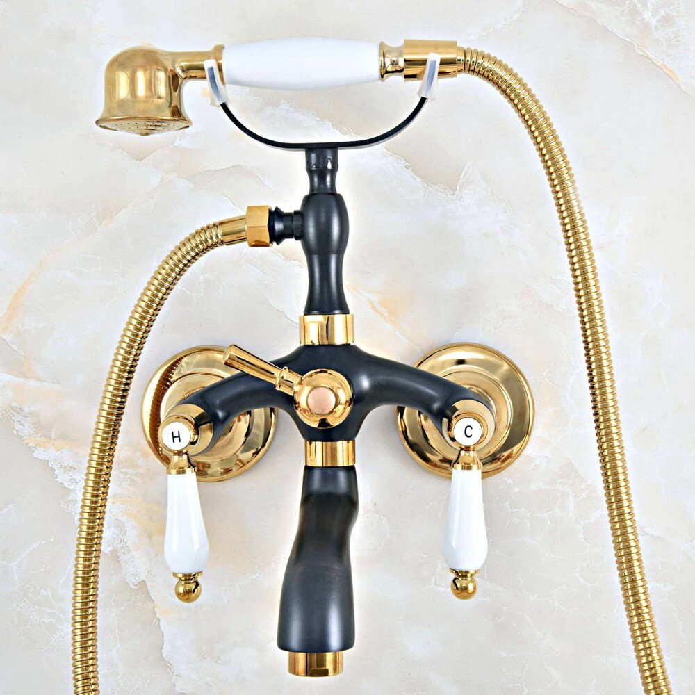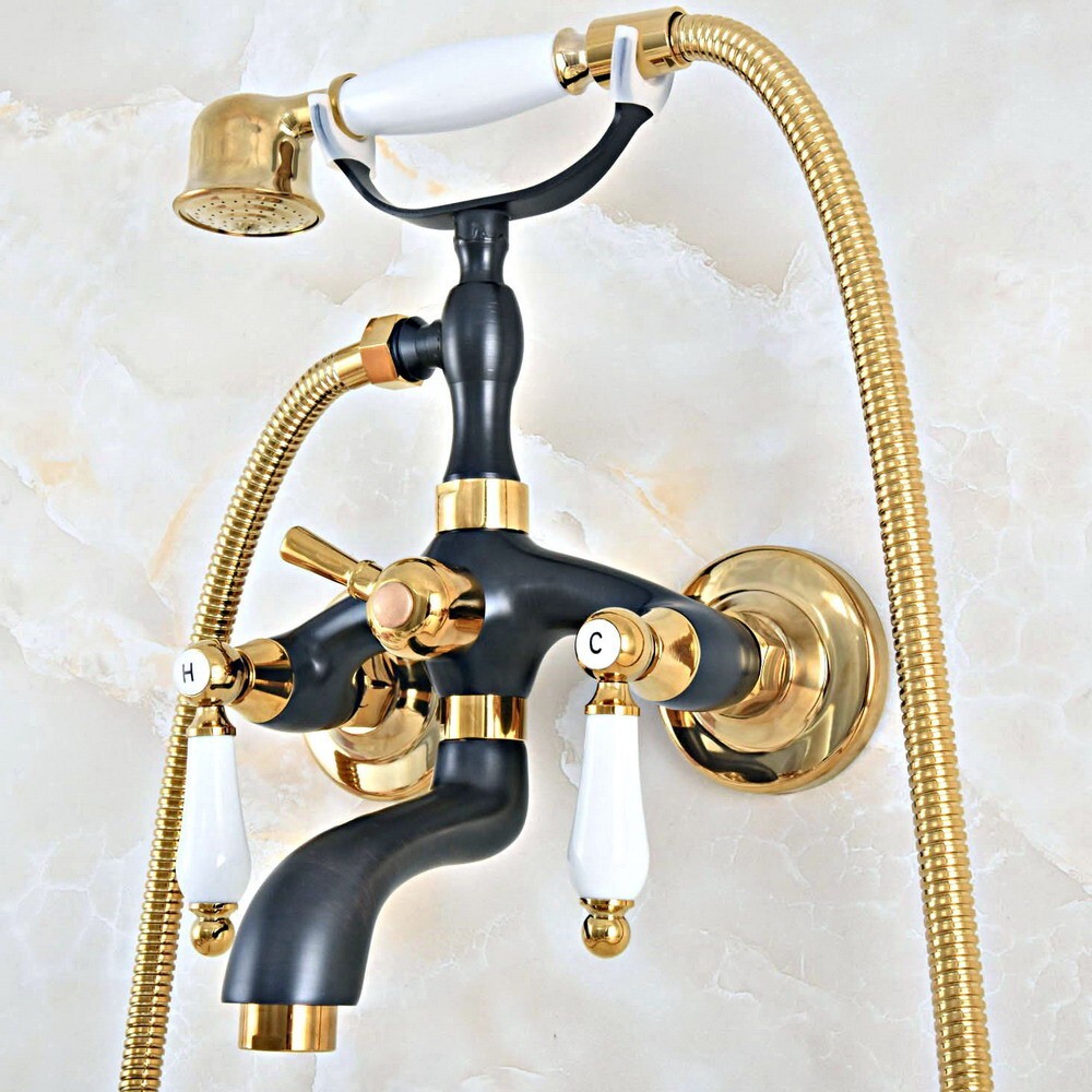 Black Gold Brass Clawfoot Bath Tub Faucet with Handshower - Wall Mount fna446