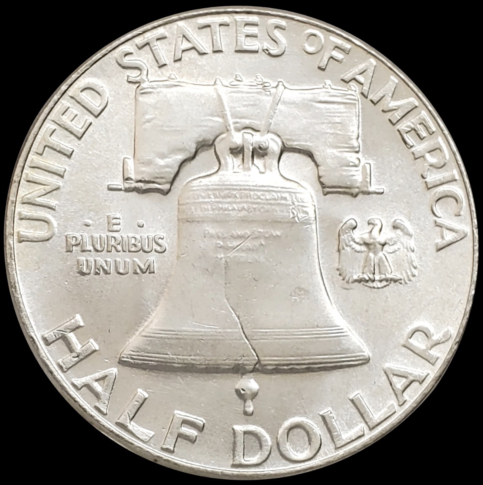 как выглядит 1955 P FRANKLIN HALF DOLLAR SILVER COIN BU/MS FBL BUGS BUNNY TEETH 0102 фото