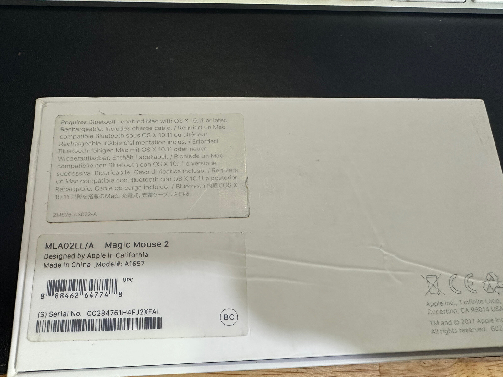 Apple Magic Mouse 2 Wireless MLA02LL/A Model A1657