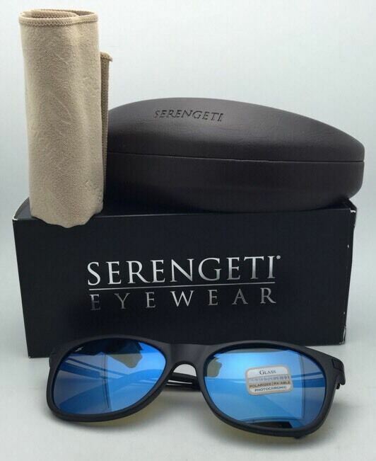 SERENGETI PHOTOCHROMIC POLARIZED Black Sunglasses Pavia 8203 w/Blue 555nm Lenses