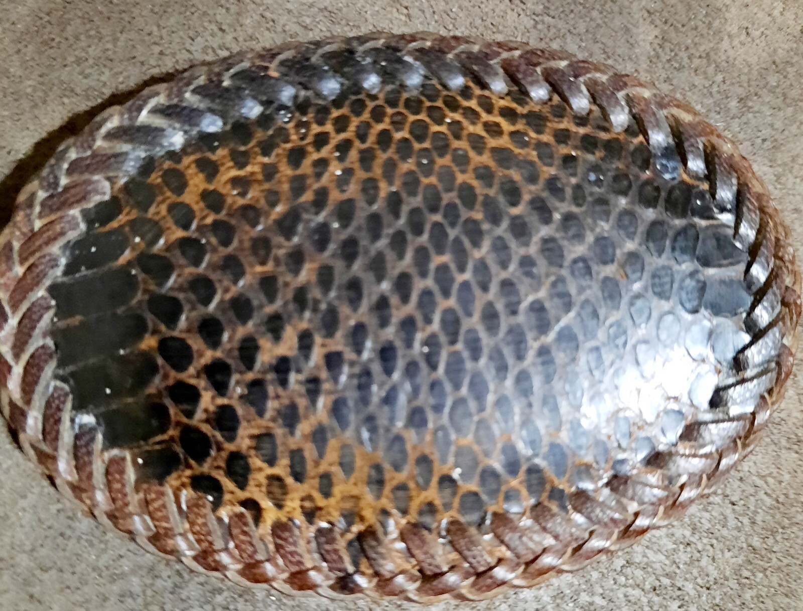 как выглядит Vintage SNAKE SKIN Leather Belt Buckle Hand Double Stitched Leather Backed 4"x3" фото