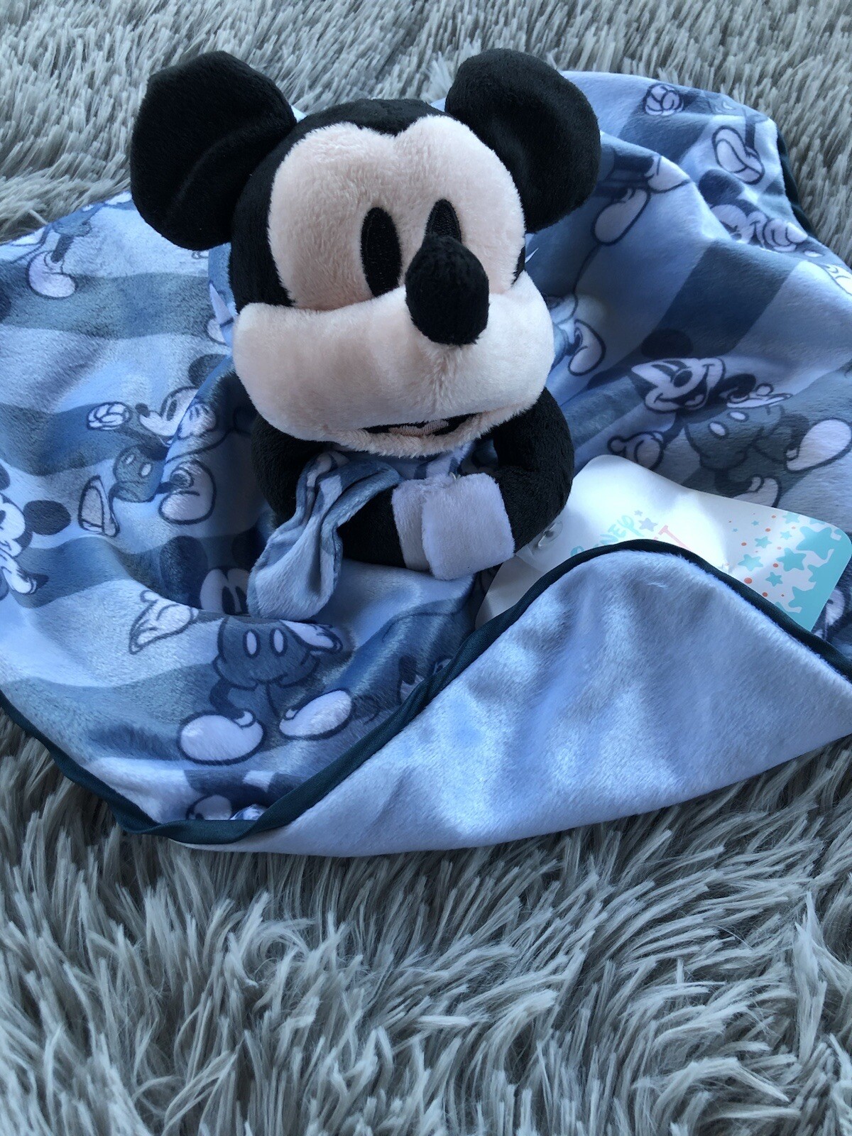 как выглядит Blue Mickey Mouse Disney Baby Gray Personalized Newborn Lovey Security Blanket фото