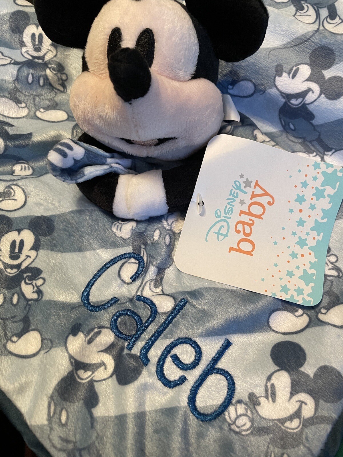 Blue Mickey Mouse Disney Baby Gray Personalized Newborn Lovey Security Blanket