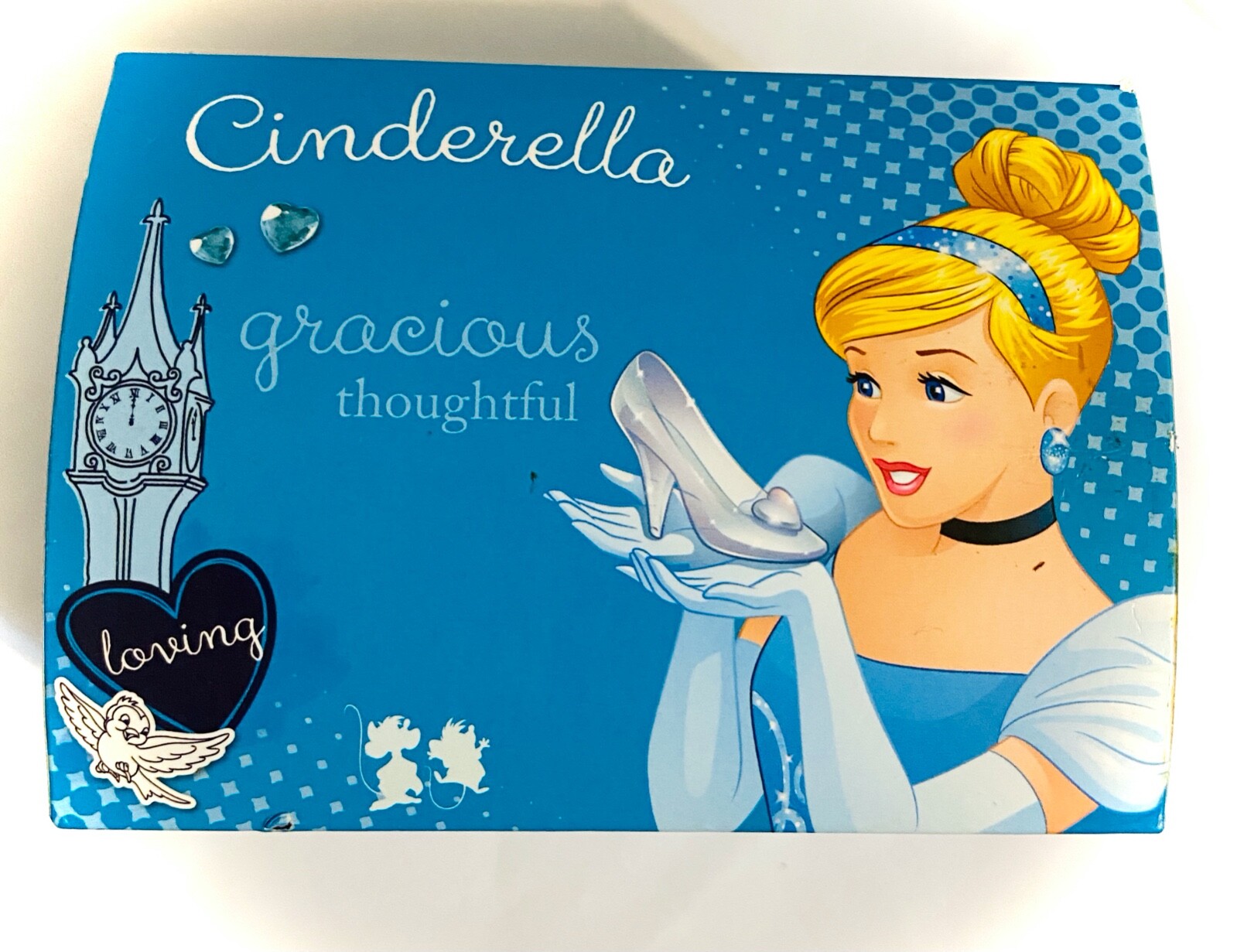 как выглядит DISNEY CINDERELLA 3 SET STUDD EARRINGS JEWELRY BOX WITH MIRROR фото