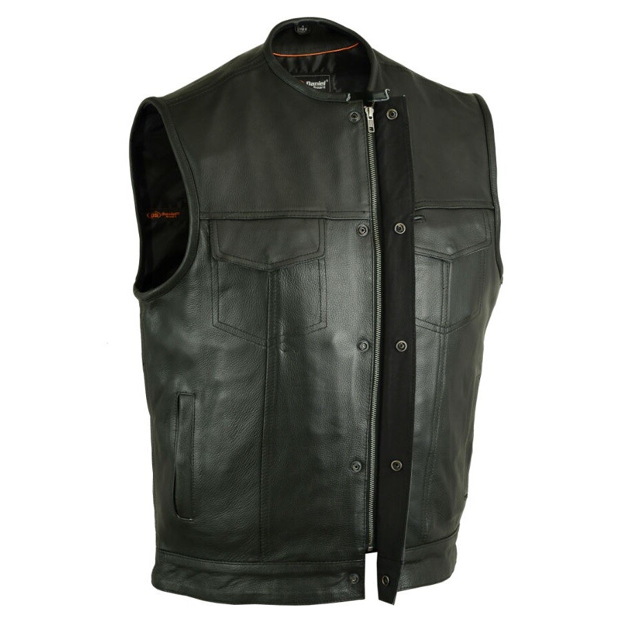 как выглядит MENS CONCEAL SNAP MILLED COWHIDE MOTORCYCLE LEATHER VEST - UMA10 фото