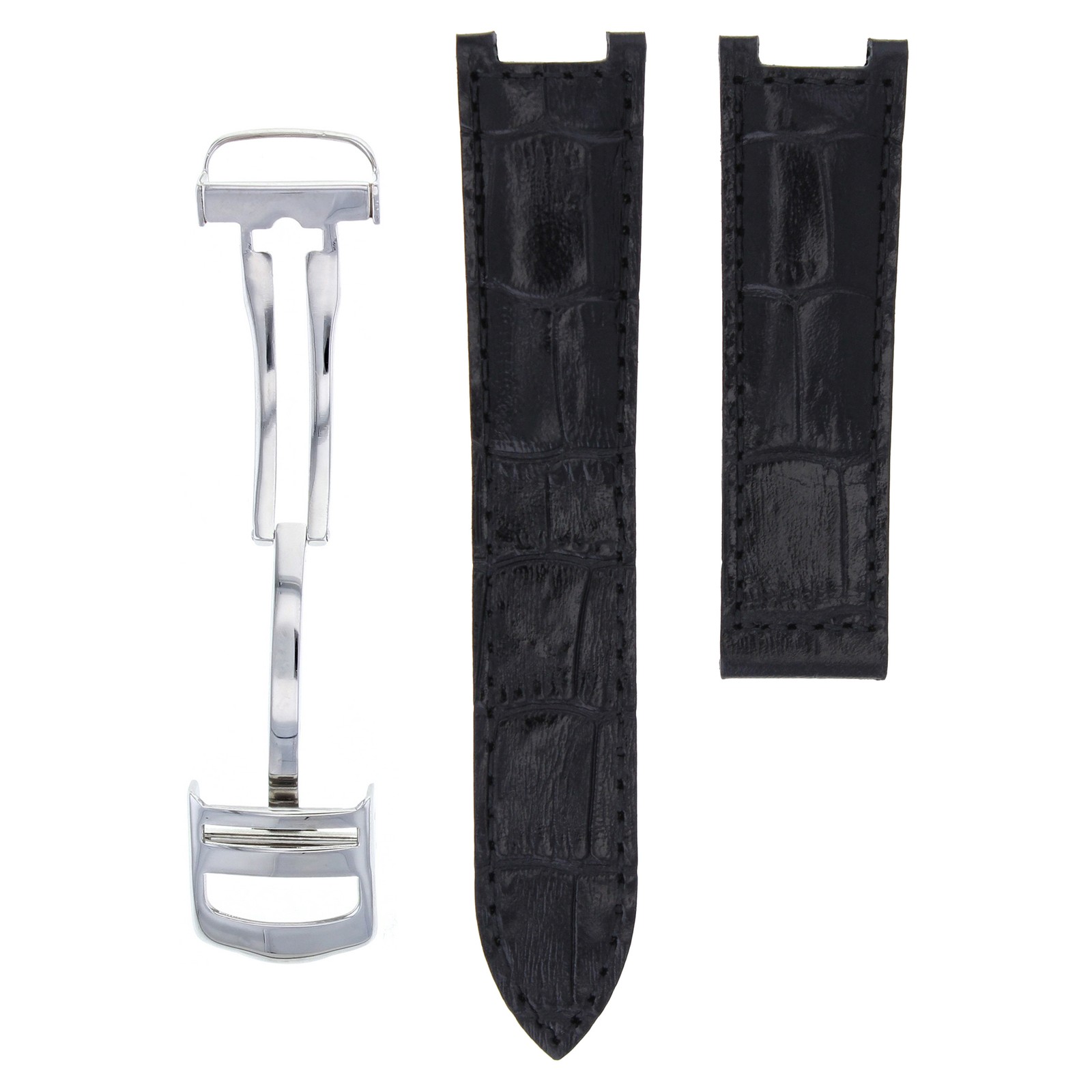 GENUINE LEATHER WATCH BAND STRAP CLASP FOR FIT 38MM CARTIER PASHA 20MM BLACK SS