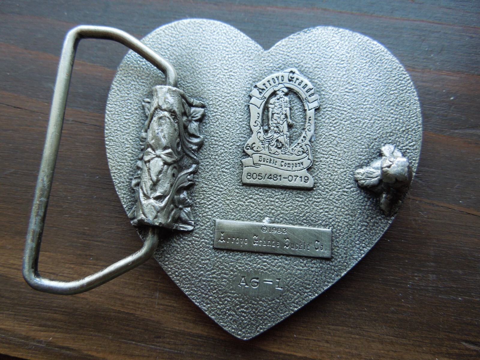 как выглядит Vintage BELT BUCKLE Arroyo Grande Buckle Co. Heart Shape 1983 unisex фото