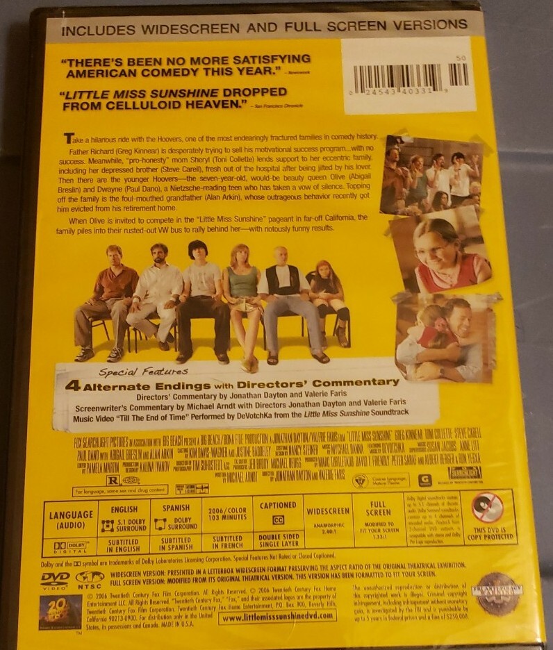 BRAND NEW Little Miss Sunshine Widescreen Full Screen DVD FREE SHIPPING