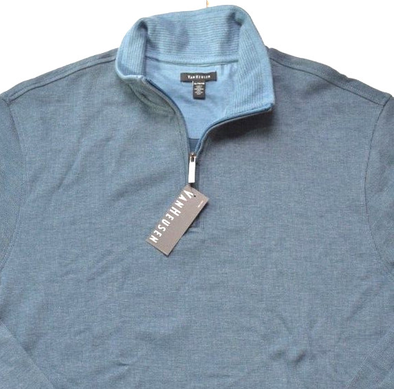 как выглядит Van Heusen Mens 1/4 Zip Sweater Rib Knit Blue XL 70 фото