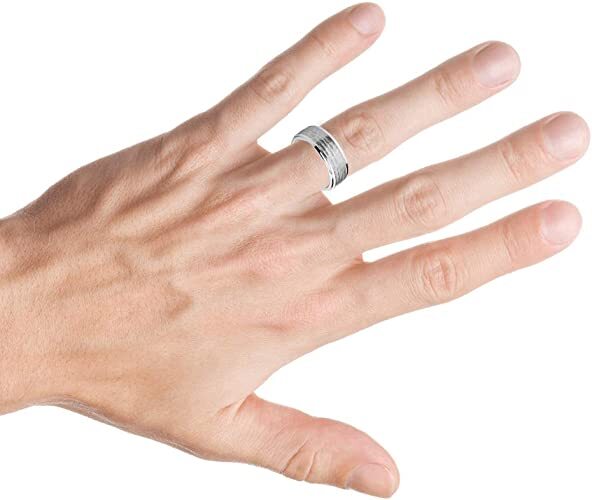 как выглядит 9mm Tungsten Carbide Stepped Down Edge Hammered Center Wedding Band Ring фото