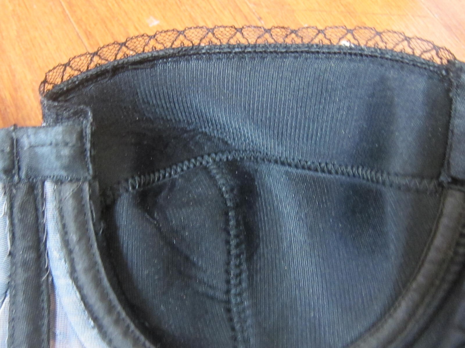 как выглядит Vintage 1950s Ann Robin Original Black Lace and Satin Corset Bullet Bra 36B фото