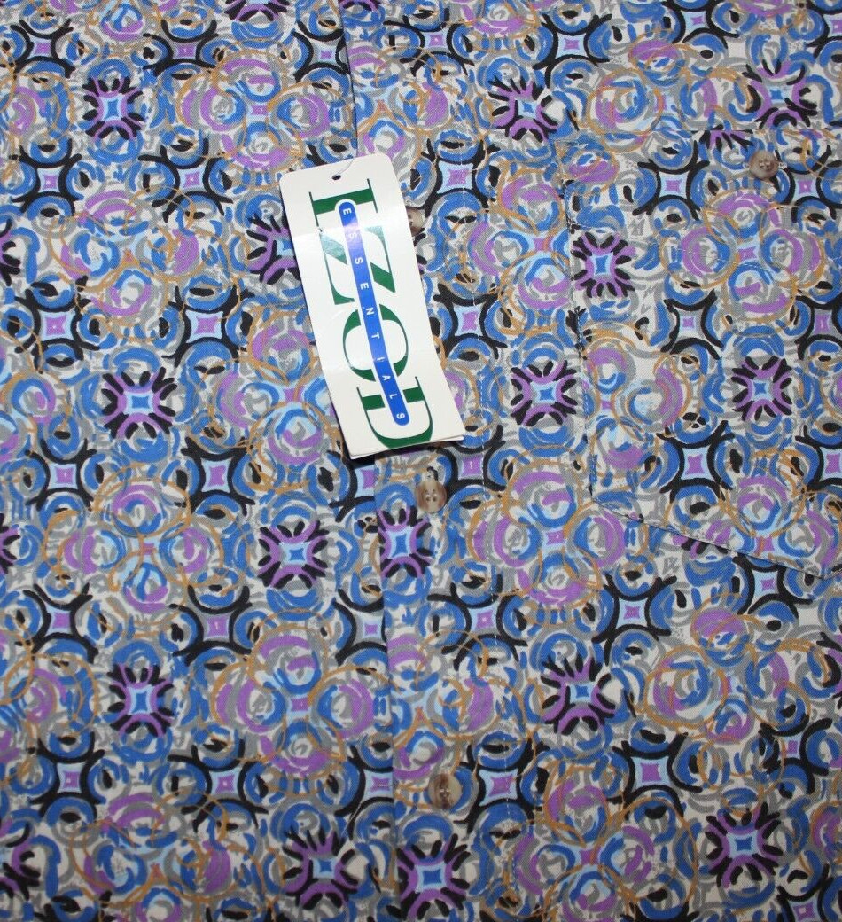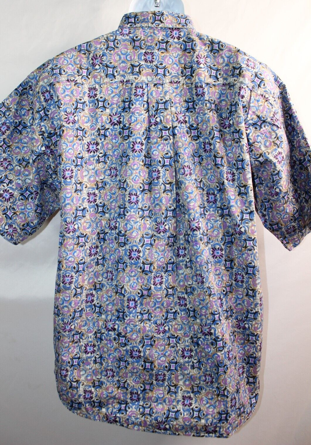 Izod Blue Purple Geometric Circles Shirt Button Up Short Sleeves Vintage NWT M
