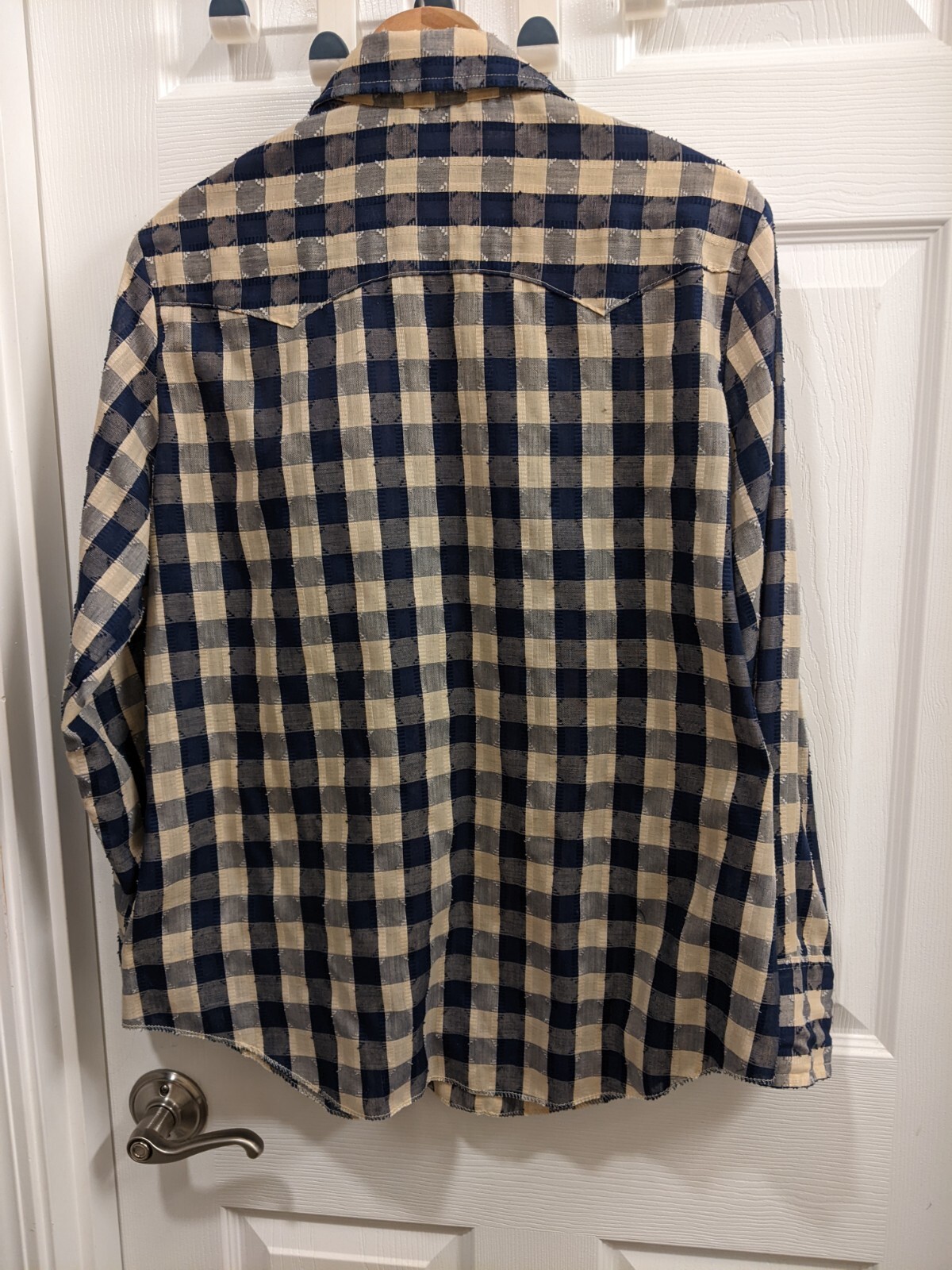 как выглядит Vintage Southwest Shirt Checks Blue and White Snap Buttons 60s 70s Snap Buttons фото