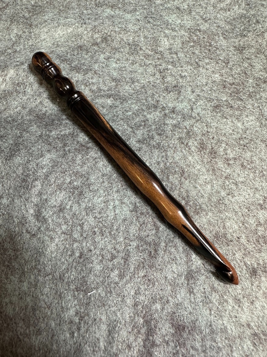 Hand carved Exotic Black White Ebony Wood YARN CROCHET HOOK size K