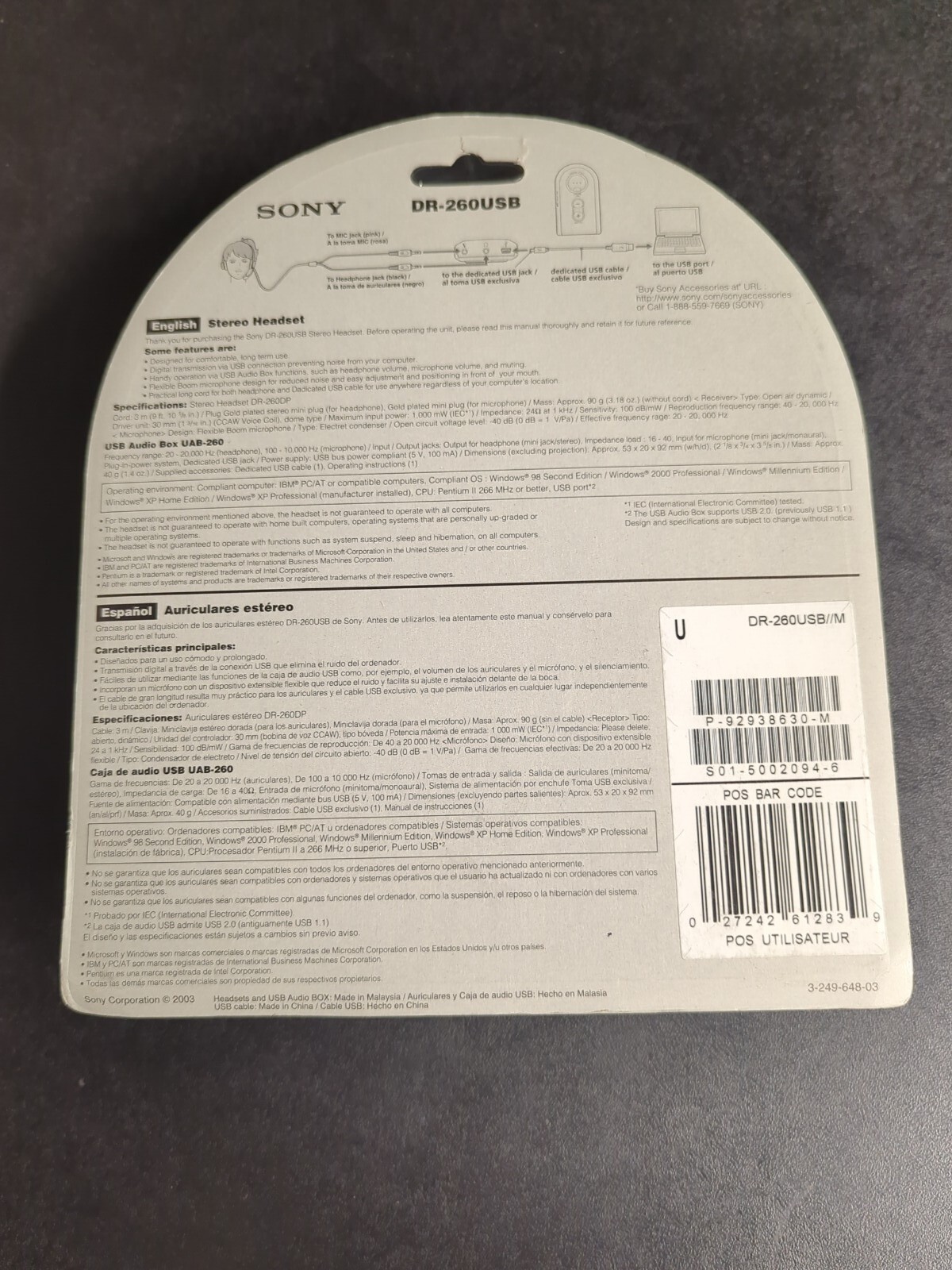 Sony Headphones Wisp Ear for PC Superior Communication DR-260USB Genuine NIB