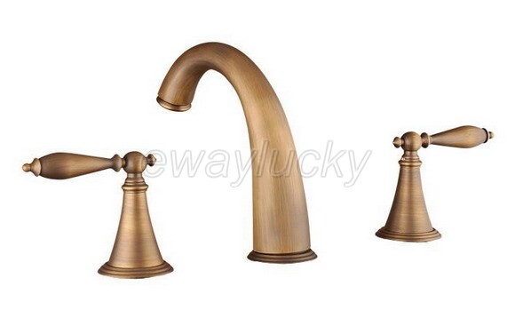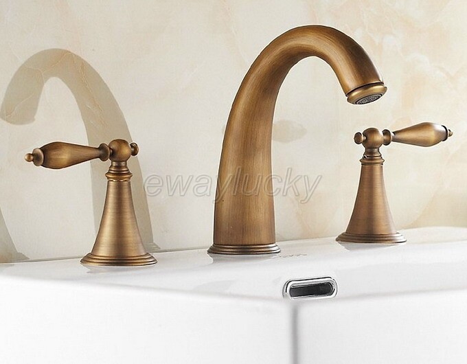 как выглядит Antique Brass Widespread Bathroom Faucet 3 Hole Vanity Sink Mixer Tap wnf064 фото