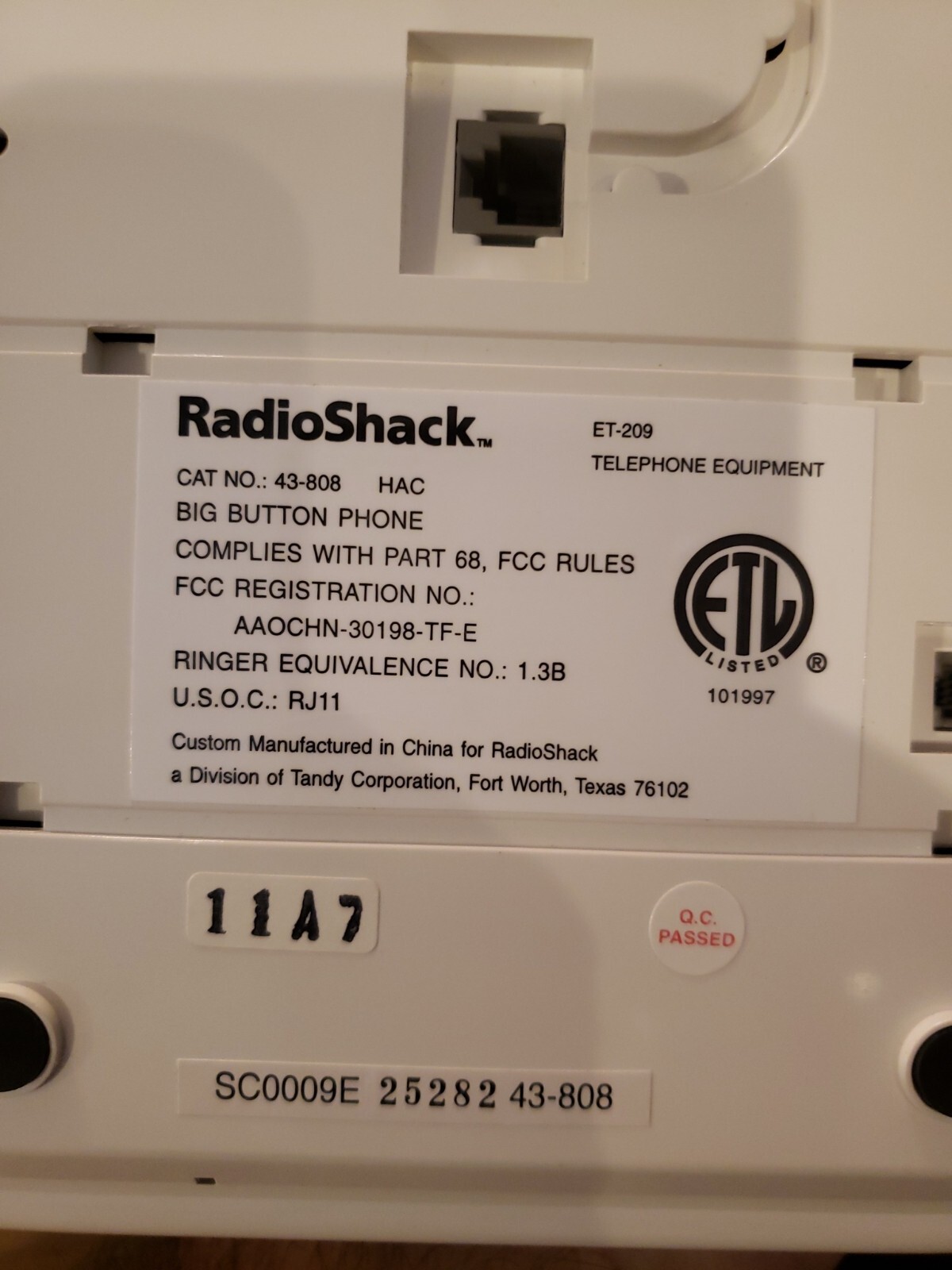 New Big Button EMERGENCY Landline Radio Shack Hearing Aid ET-209 PHONE 43-808