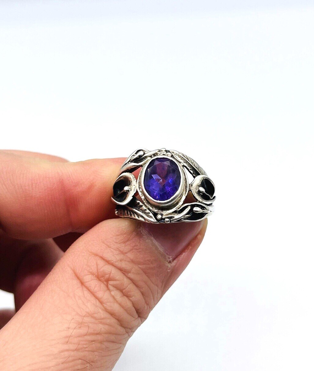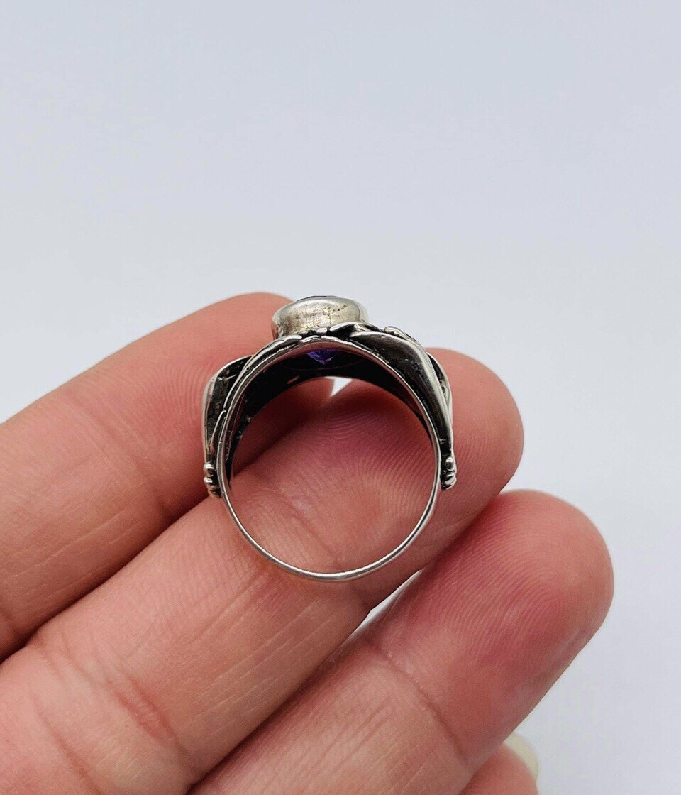 как выглядит Vtg 925 Sterling Silver Ring Purple Amethyst Color Stone Sz. 8 фото
