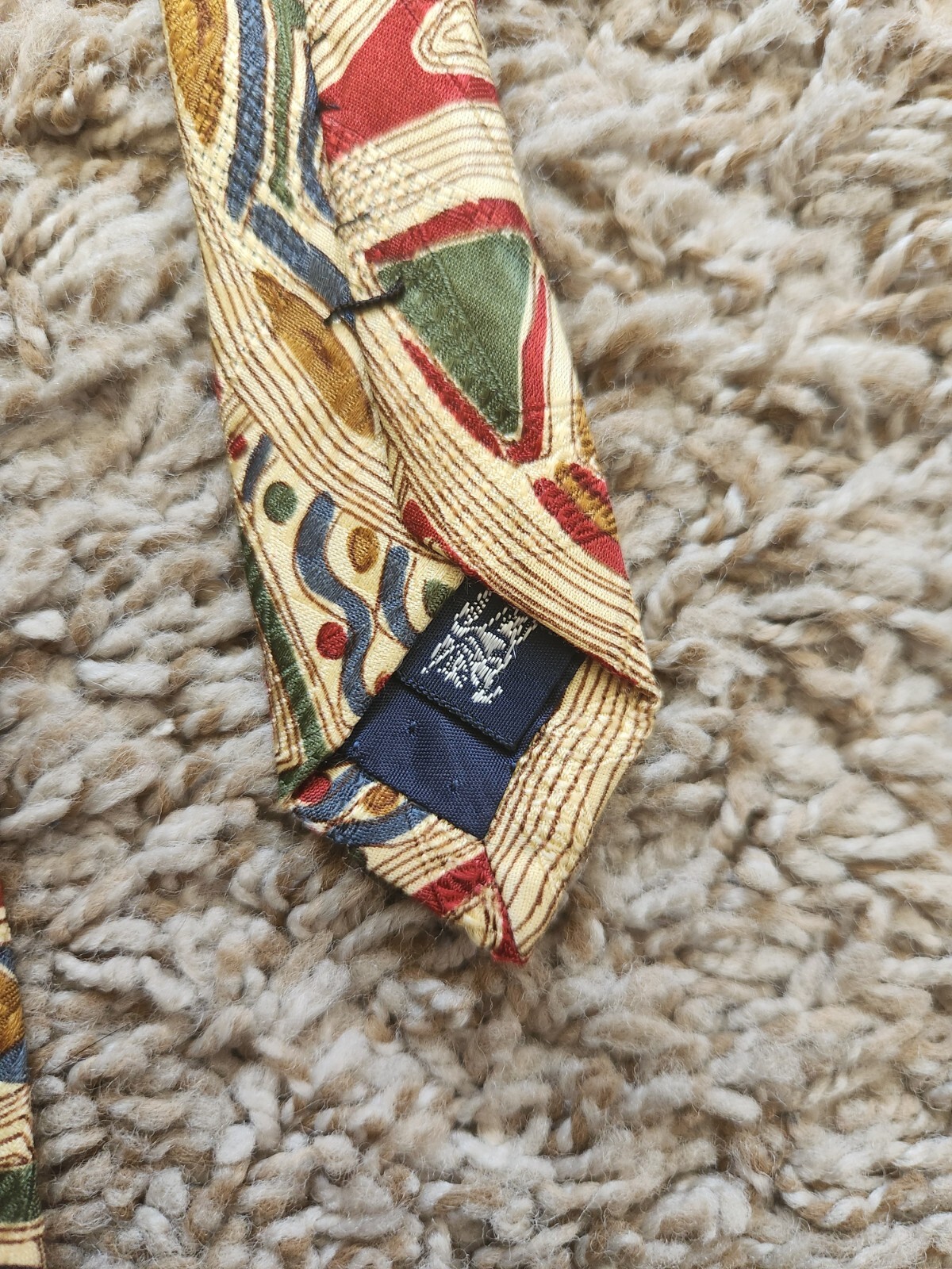 как выглядит Burberry London Vintage Abstract 100 Silk Neck Tie 56.5" Yellow M.i. USA Euc фото