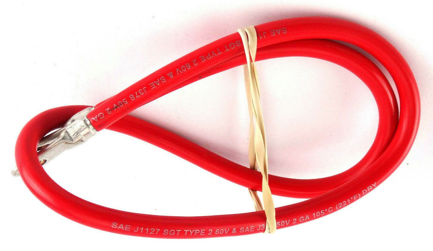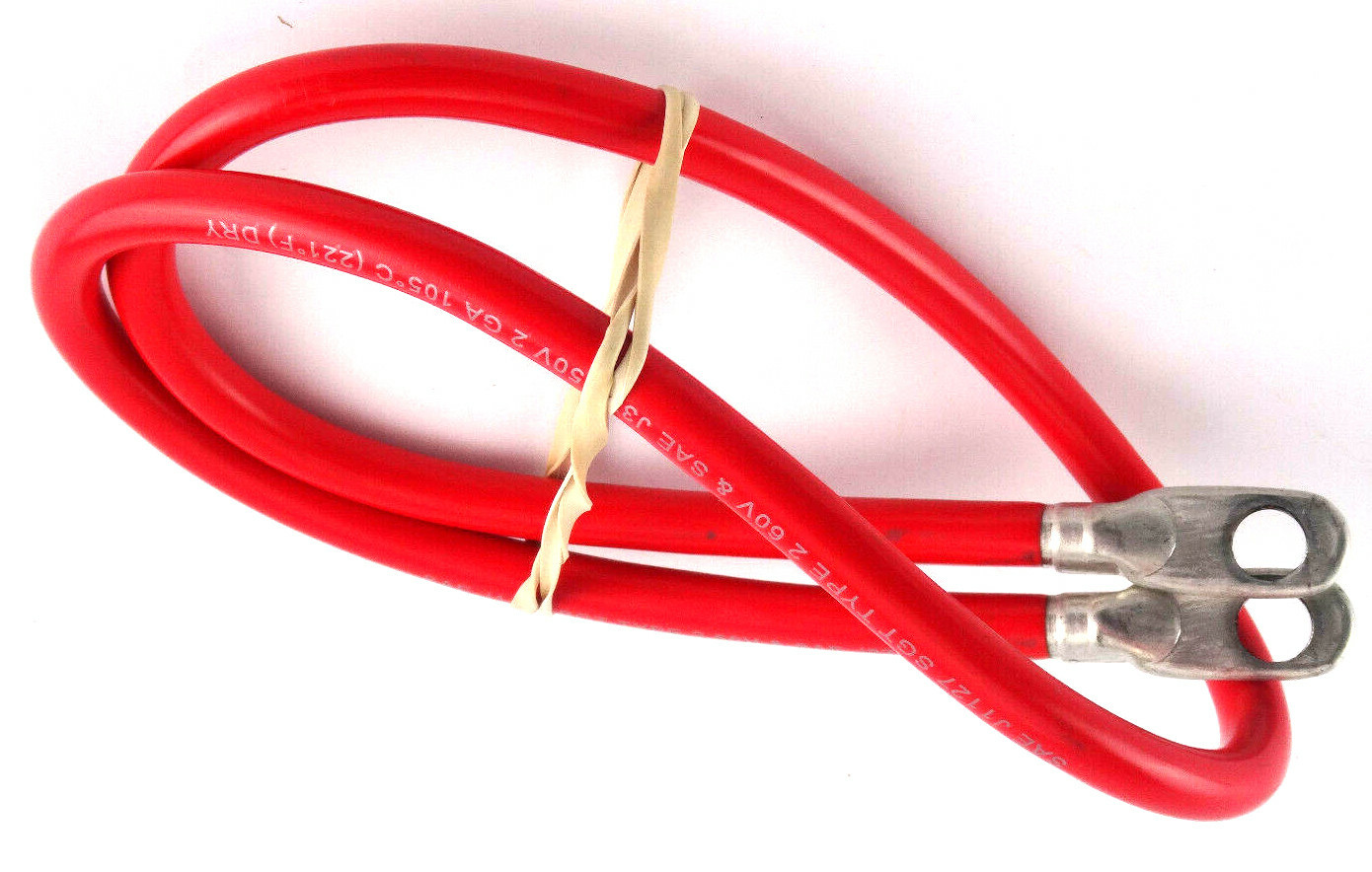 2 AWG Gauge Red Battery Cable 7/16 Lugs Inverter Cables Solar RV Car 3' FT Long