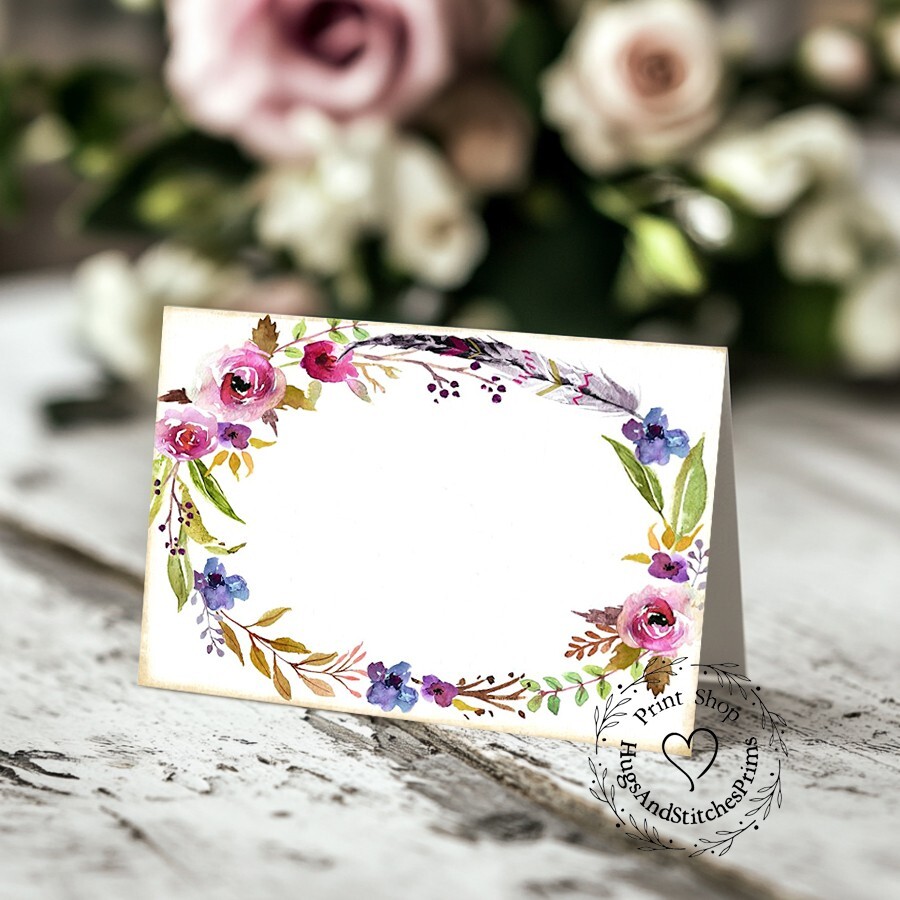 как выглядит WATERCOLOR BOHO FLORAL FEATHER TENT STYLE WEDDING PLACE CARDS or TABLE CARDS 216 фото
