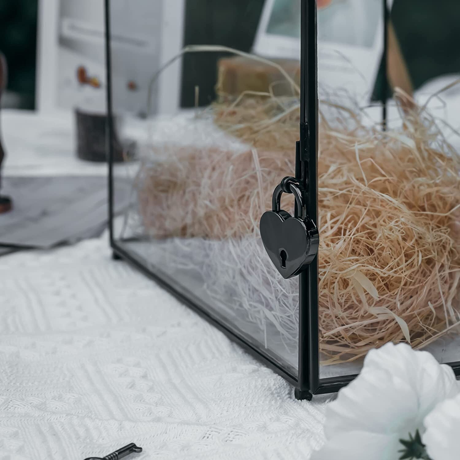 как выглядит NCYP Wedding Glass Cards Box with Slot and Lock 10.2x5.9x7.9 Inches Handmade фото