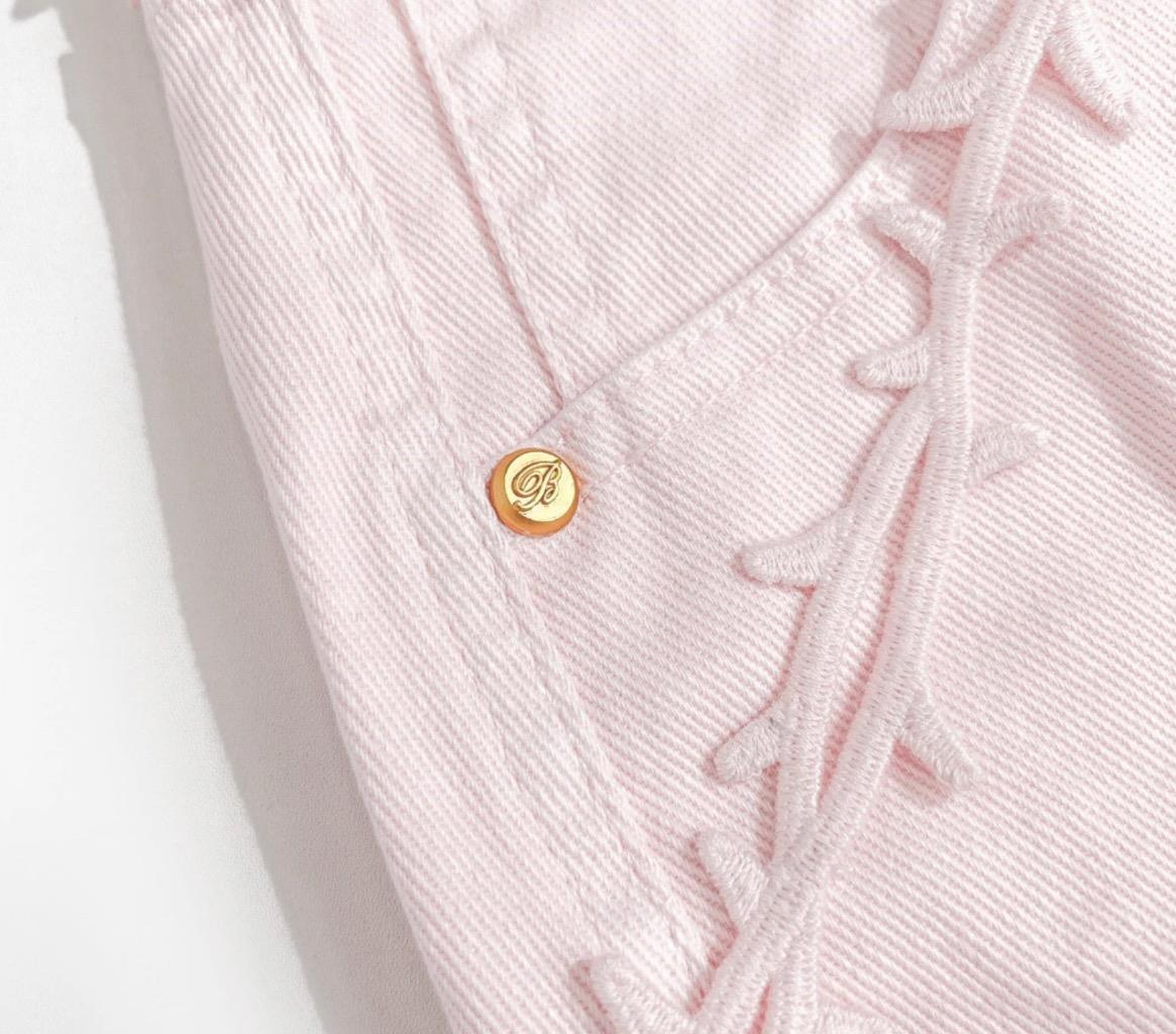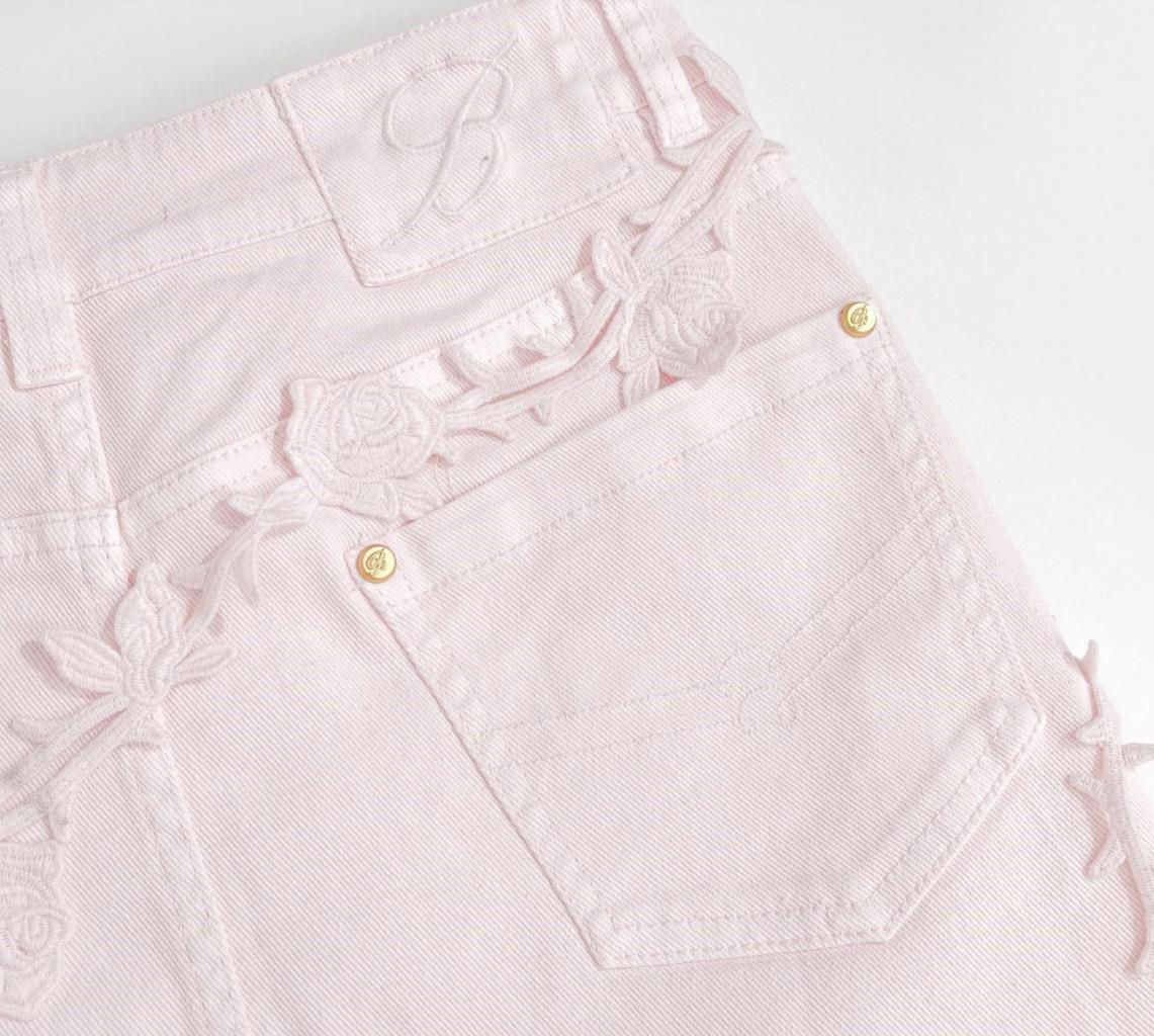 как выглядит BEAUTIFUL FLOVER APPLIQU - BLUMARINE - MINI STRETCH DENIM SKIRT SZ M фото