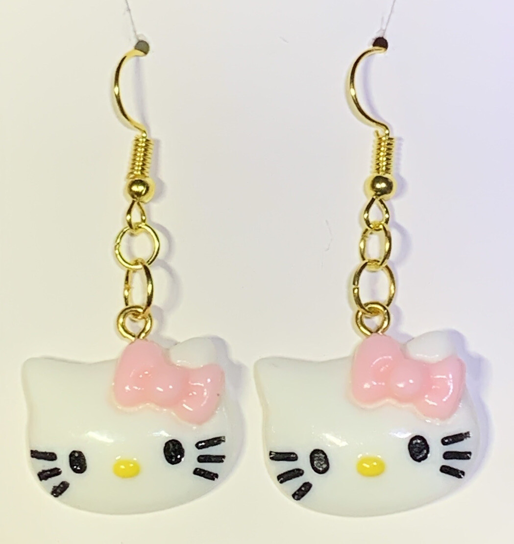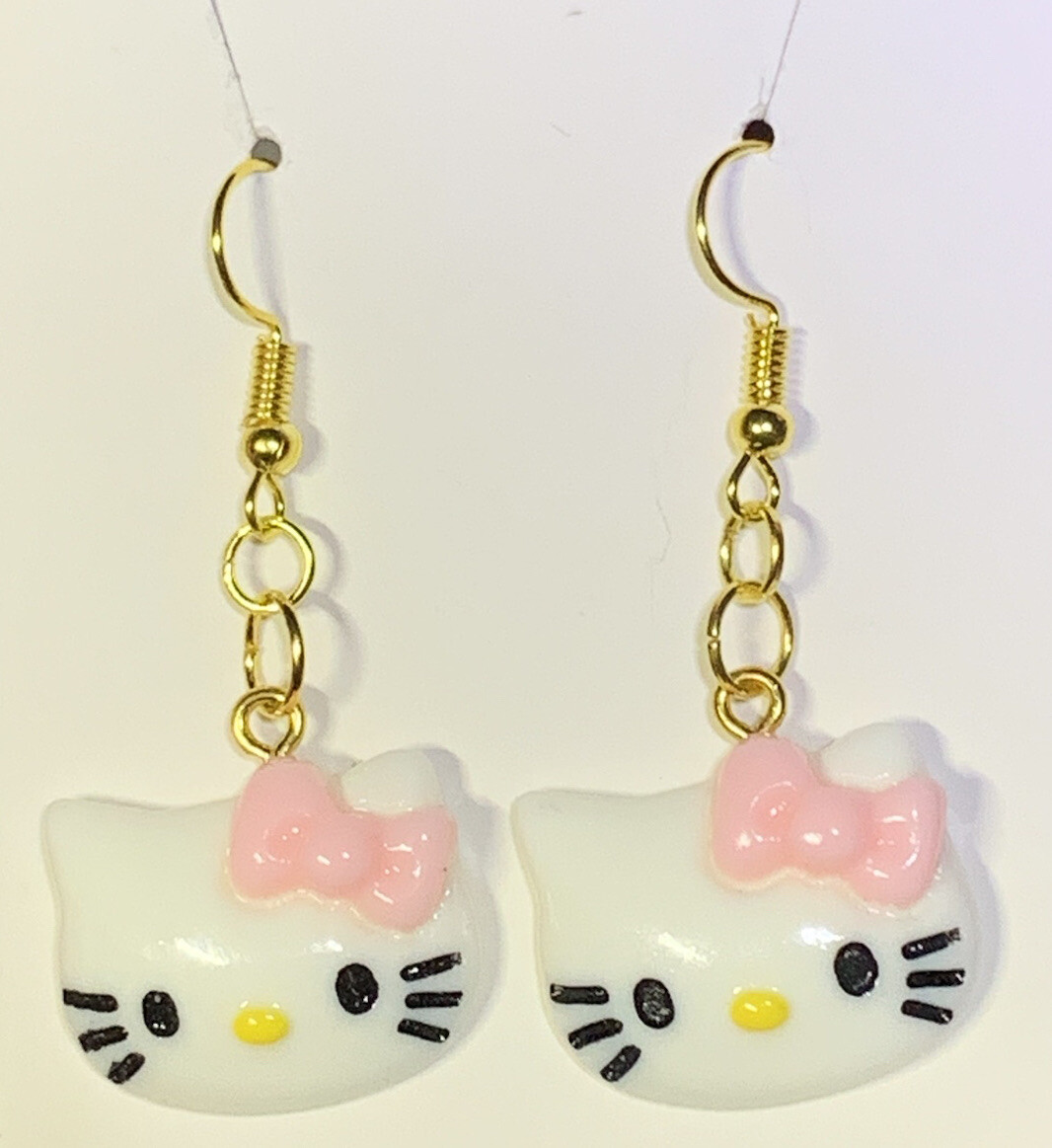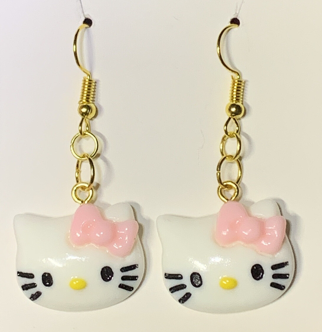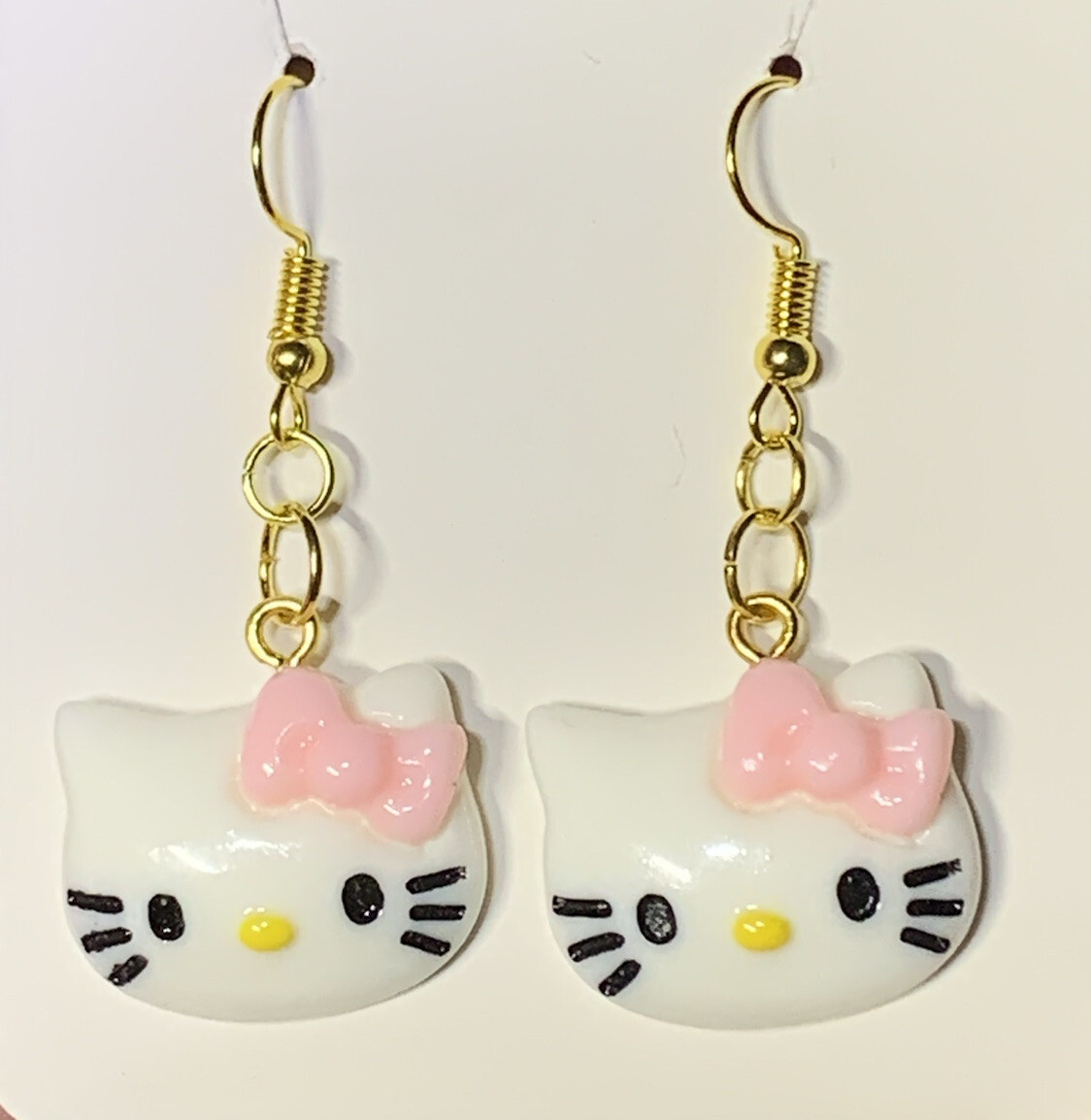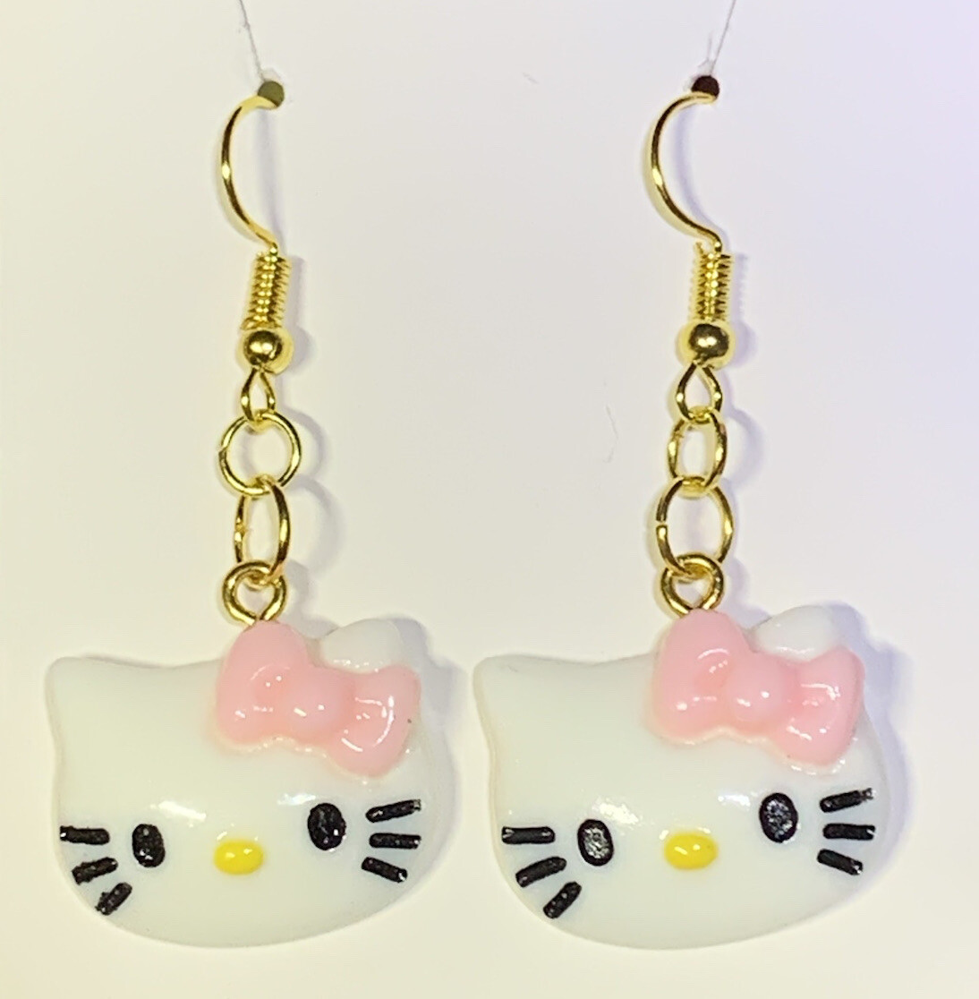 как выглядит Gold Hello Kitty Drop Dangle Earrings фото