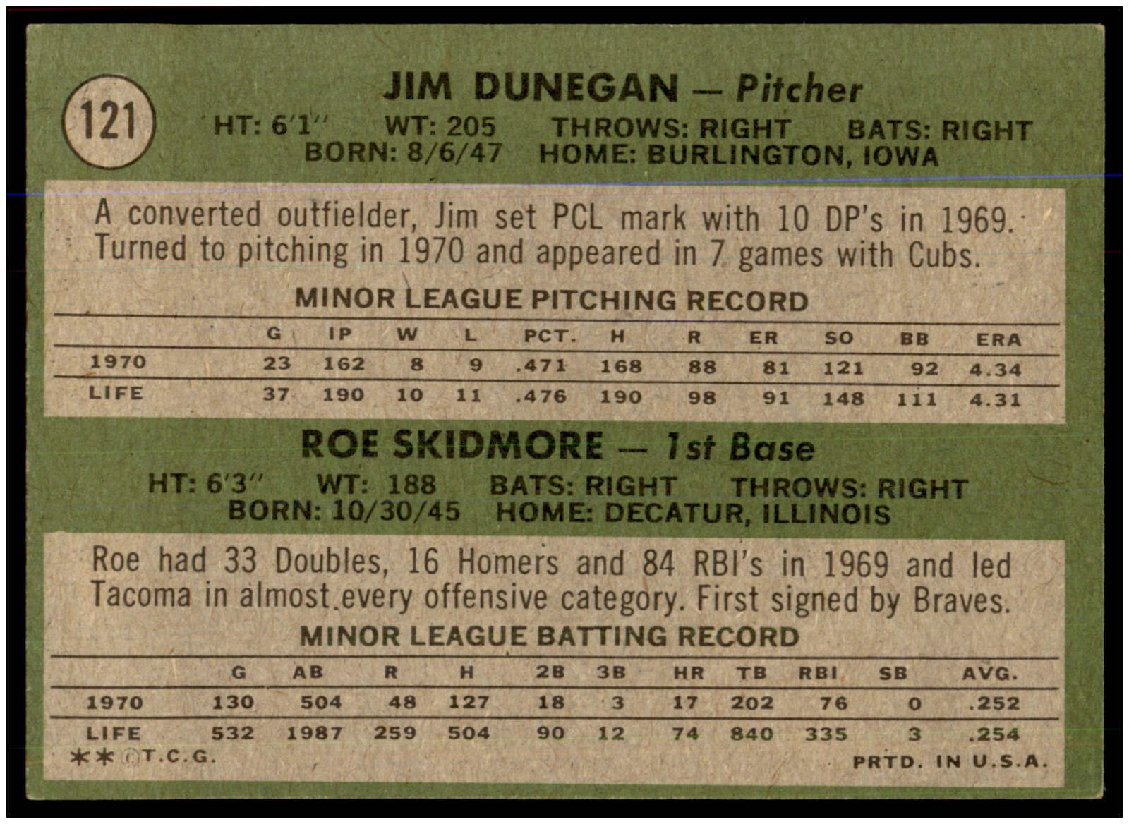 1971 Topps BX1A: 121 Rookie Stars Dunegan Skidmore B