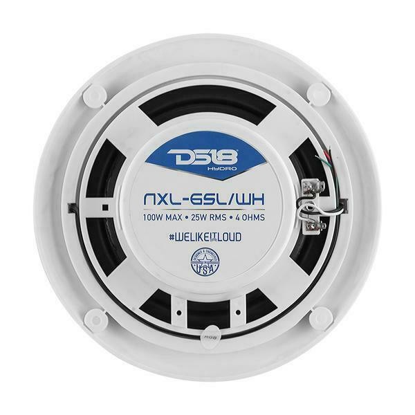 6.5 25 Watt RMS 4-Ohm 2 Way Slim White Marine Speakers Pair NXL-6SL DS18