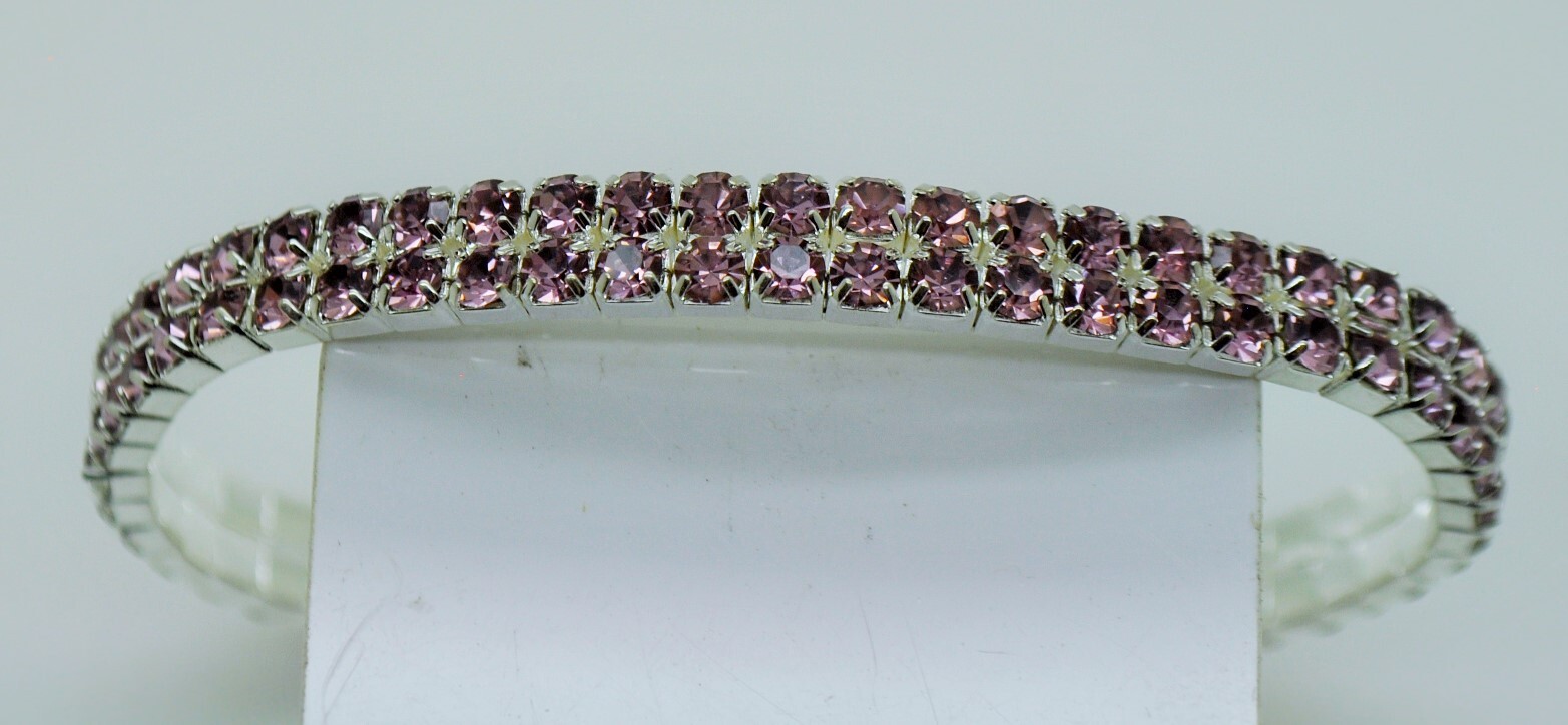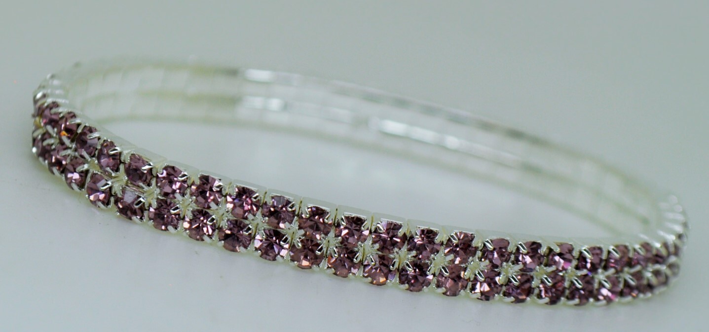 2 Row Silver purple color Rhinestone Crystal Stretch elastic Bracelet wedding