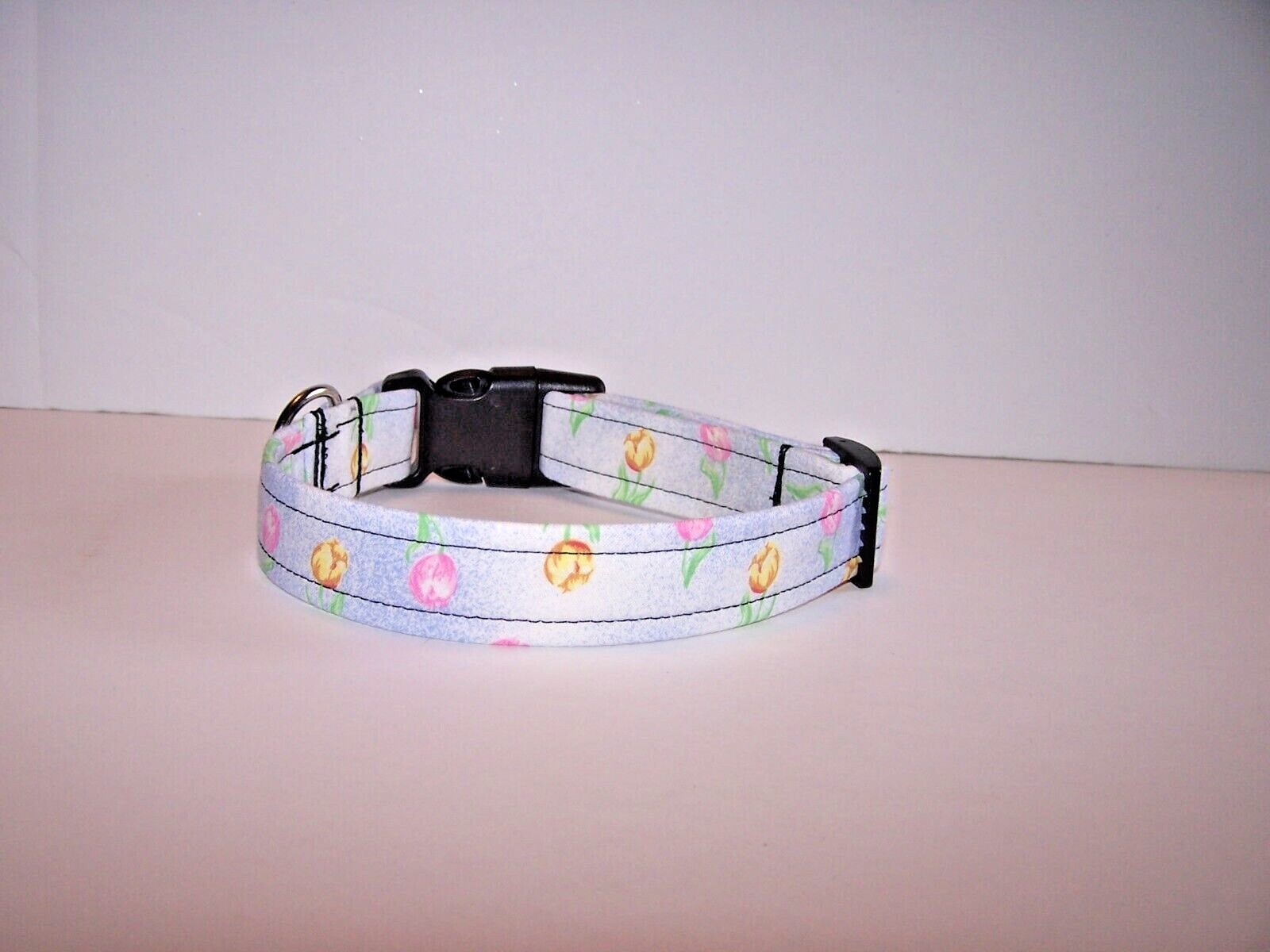 Wet Nose Designs Tulip Blooms Dog Collar Distressed light blue white Flowers