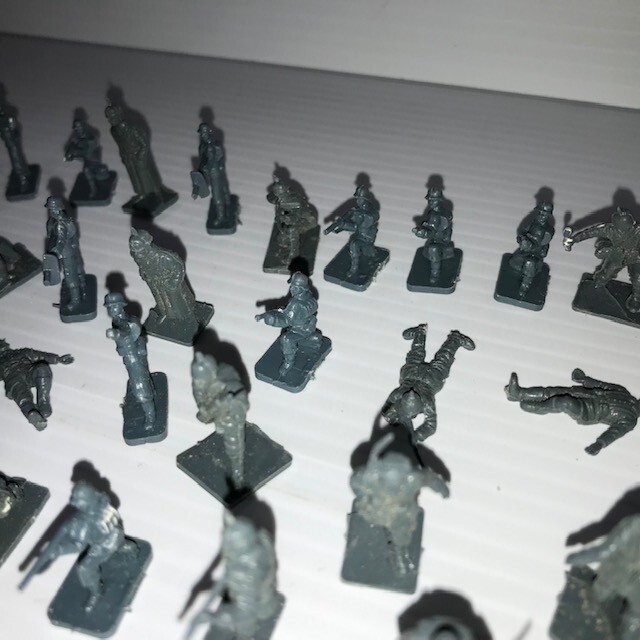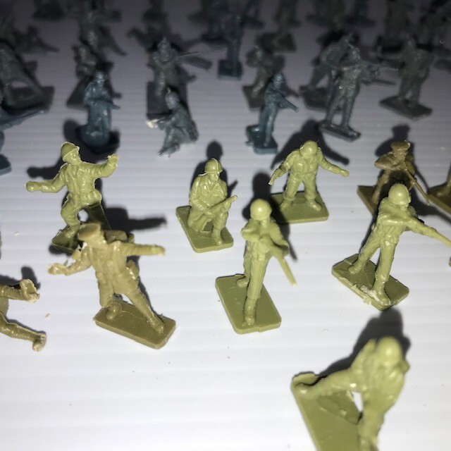 Lot of Vintage Tiny Army Men - 61 Blue, 31 Green, various poses FC90-1 T1087