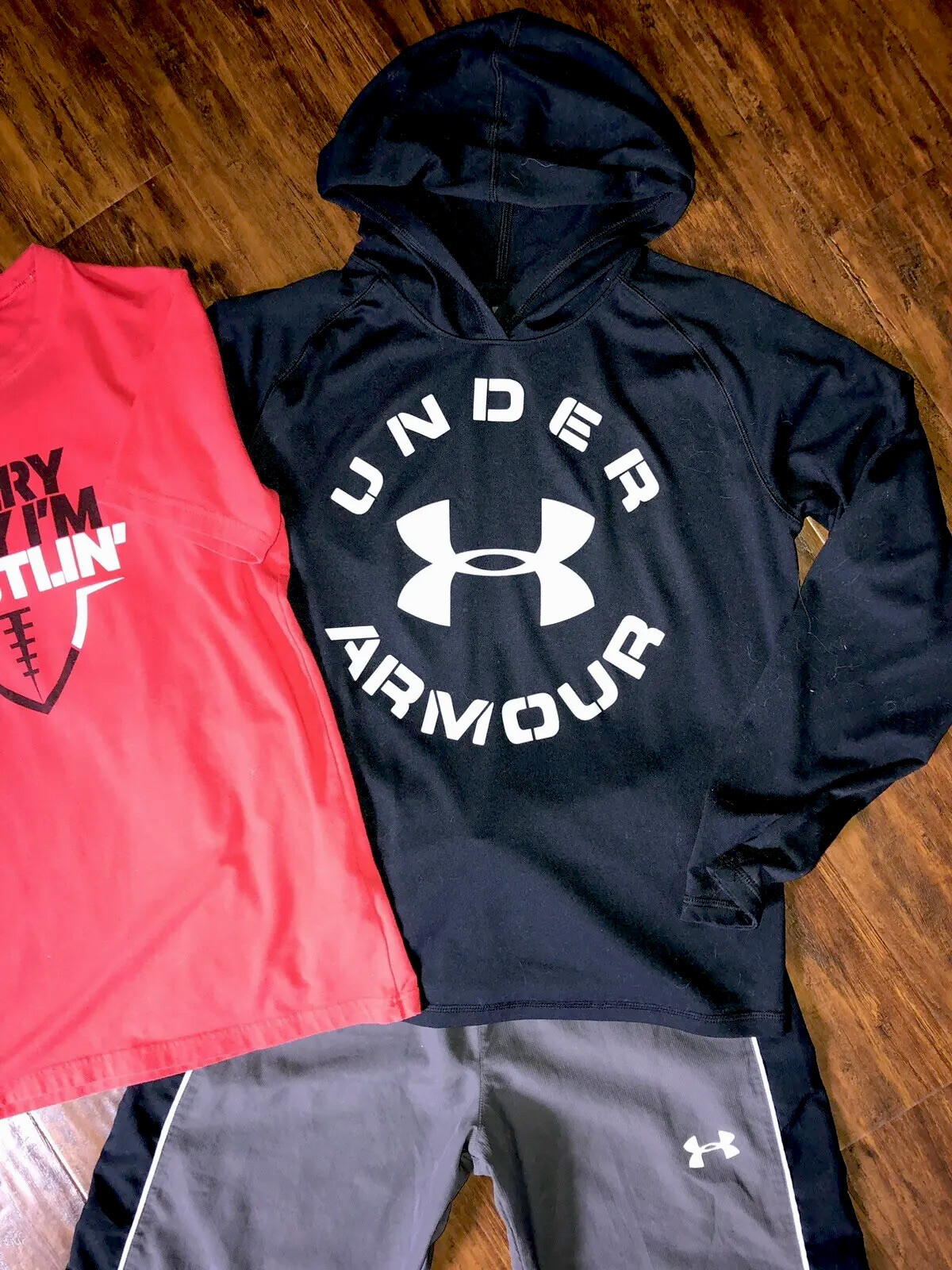 как выглядит Under Armour Hooded Long Sleeve Shirt Sweat Pants Boys YMD Lot фото