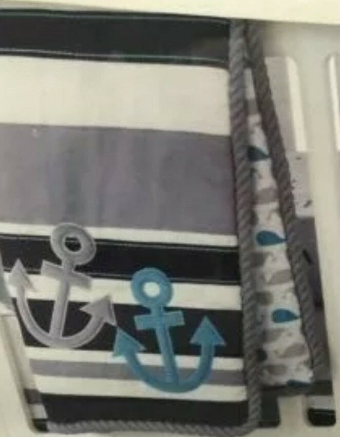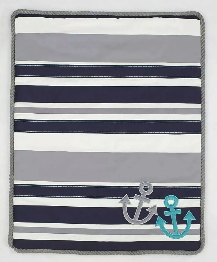 как выглядит NEW HIGH SEAS 3PC CRIB SET NAVY BLUE GRAY ANCHOR фото
