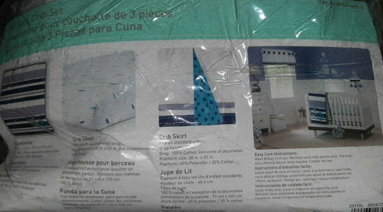 NEW HIGH SEAS 3PC CRIB SET NAVY BLUE GRAY ANCHOR