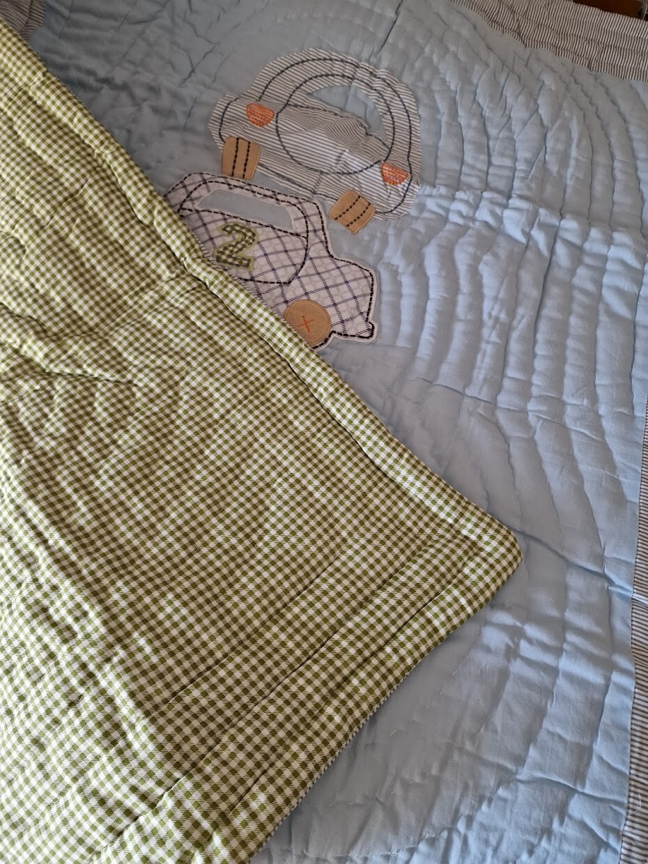 NEW Toddler baby bedding set blue QUILT DUVET COVER PILLOW CASE cars/vehicles