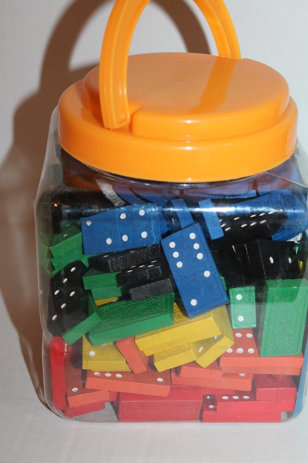 как выглядит Pressman Double Six Bucket of Dominoes 6 Color Sets for Kids Math Manipulatives фото