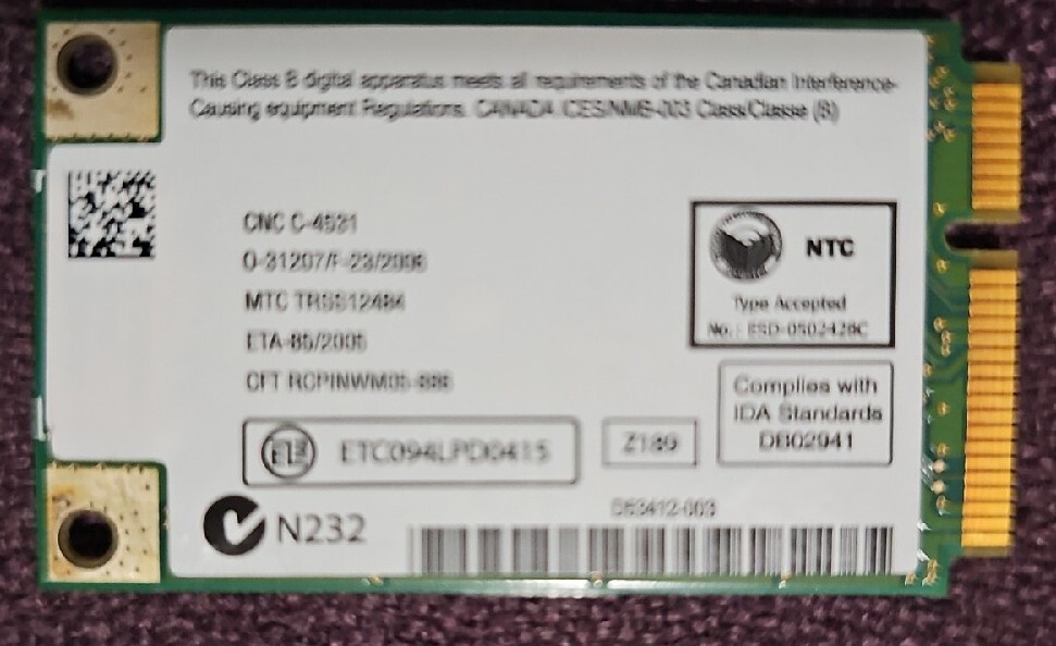 как выглядит Dell 0NC293 WM3945ABG Dual Band Wireless WiFi PCI-E Mini Card WLAN фото