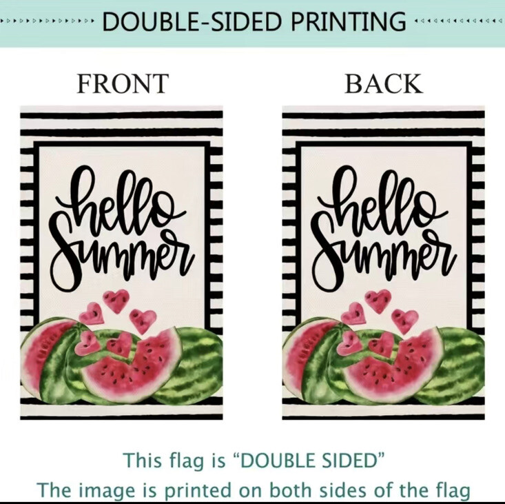 Hello Summer Garden Flag Watermelon Heart Double Sided Striped Burlap New