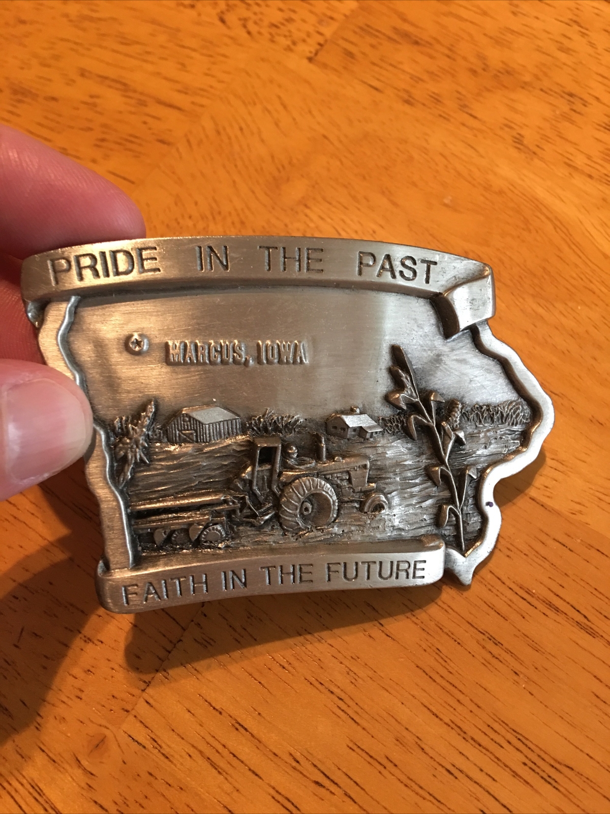 Pride in the past faith in the future belt buckle Marcus Iowa Limited Edition